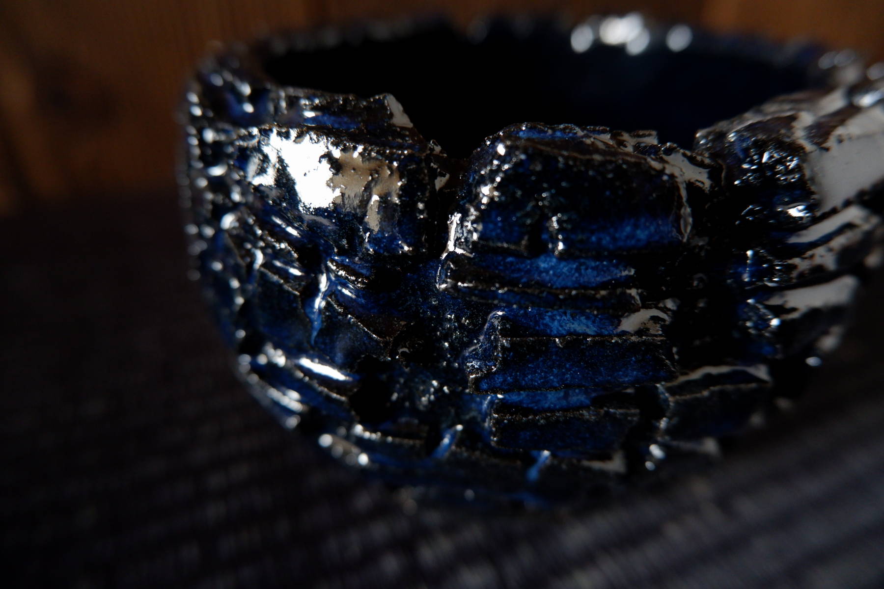 新色としましては「深海窯変碧」で、艶のある黒に近い濃紺(ミッドナイトブルー)が光の当たり具合により青が浮かび上がったり沈んだりする、表情豊かな発色になりました。
