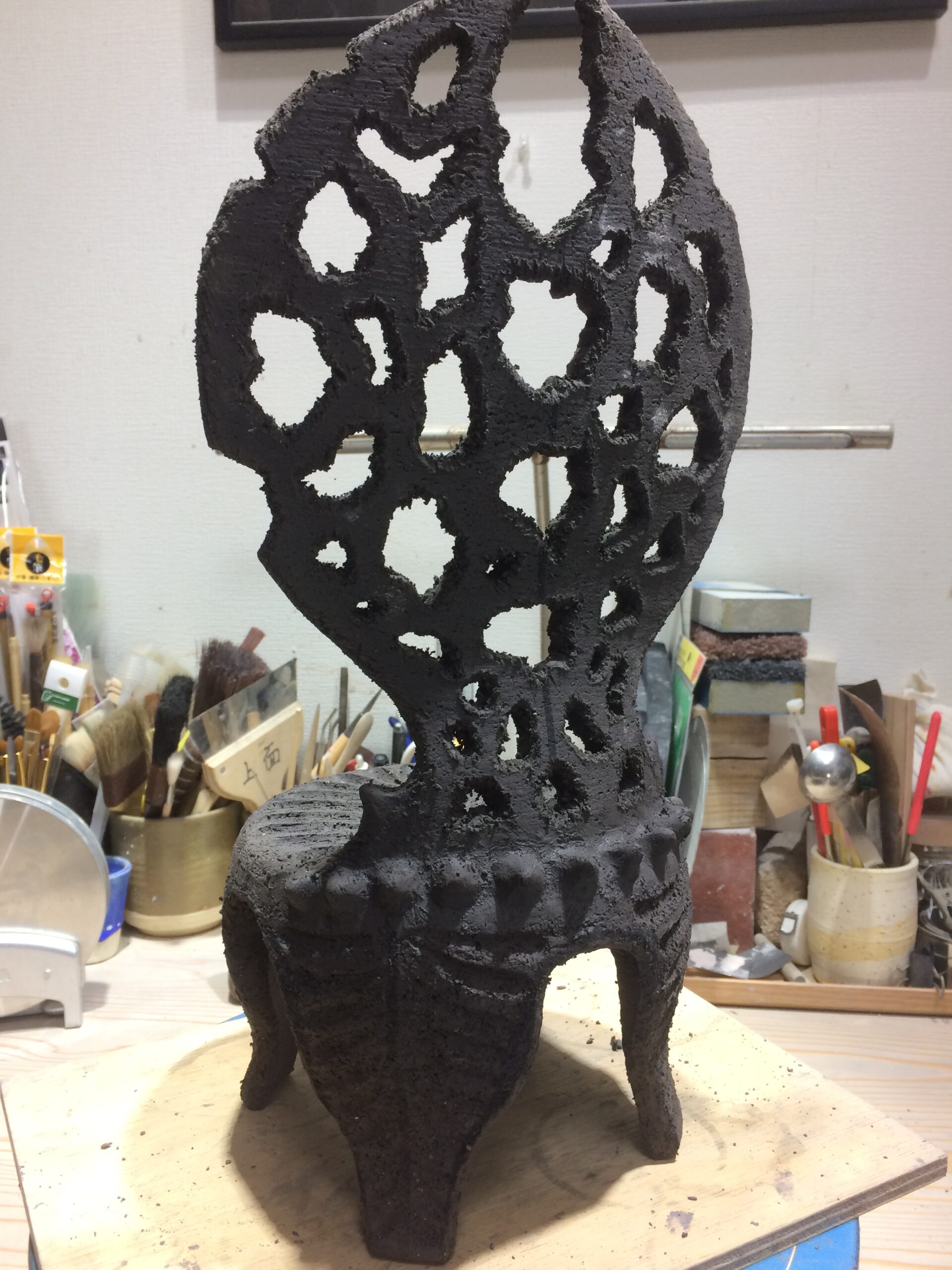 美しい子や赤ちゃん、不思議の国の住人やマーメイドなどが座るのに相応しそうなもののイメージで作ってきましたが、ここに来て真逆なものを作ってみたくなりました。