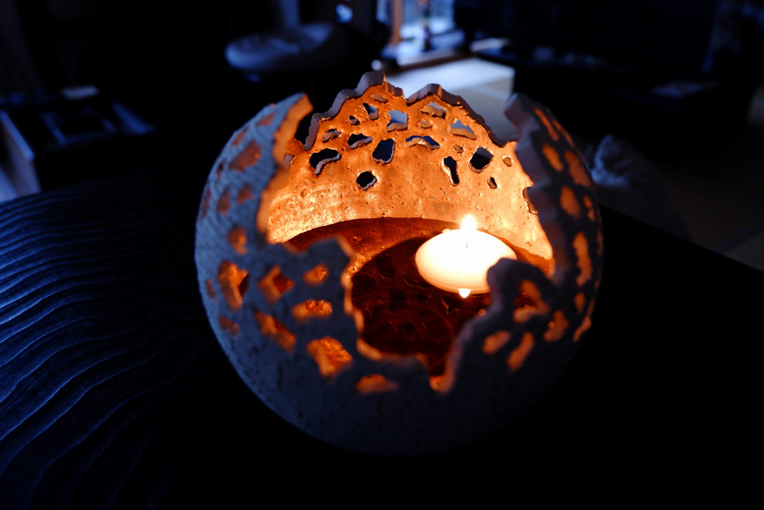 まだ種類は多くありませんが、透かし彫りを入れた釣鐘型から始まり、ひだ模様を削り出したもの、今では水に浮かべるキャンドル、いわゆるフローティングキャンドル用のホルダーなども作っています。