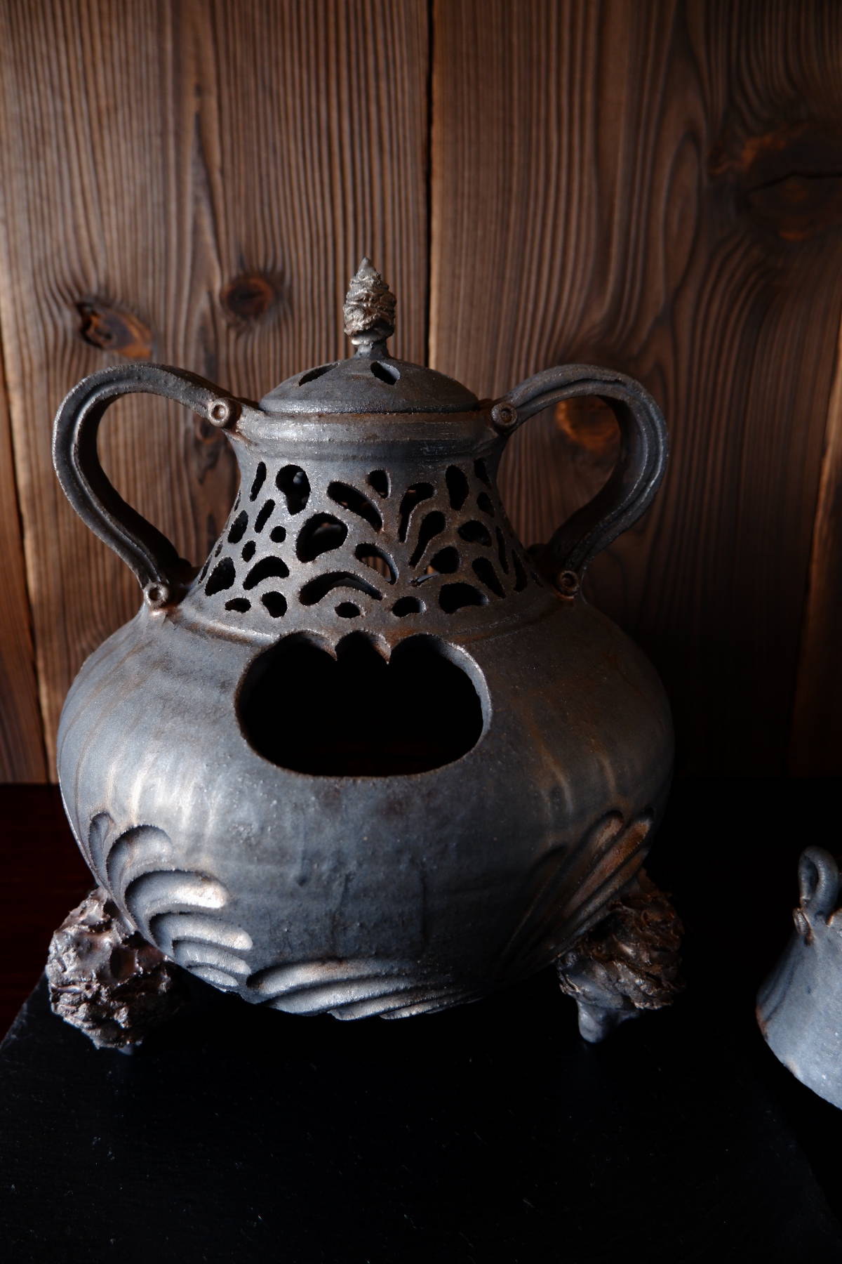 また、下の炉だけを手炙りの火鉢や香炉としても使えるように、上の窯の代わりに使える蓋もお付けしています。
