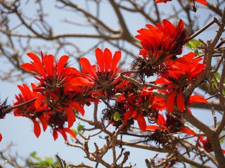 この季節は沖縄の県花であるデイゴの赤い花も見頃です。