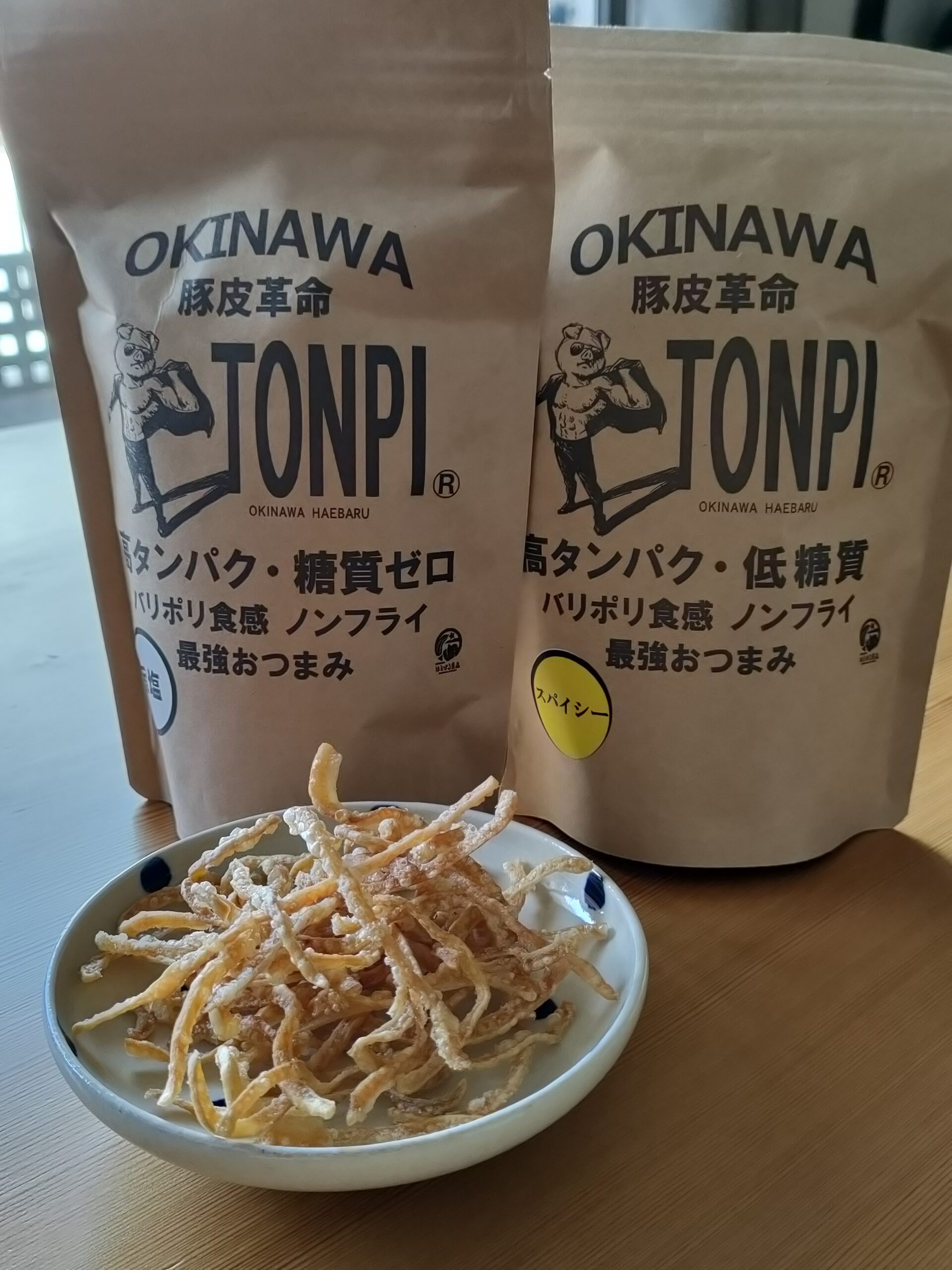高タンパクに糖質ゼロの食材ではあるものの、油で揚げるので高カロリーや脂質を敬遠する人も多いのですが、新たに南風原町の日新ミートフーズから「TONPI」という商品が発売されて人気だそうです。