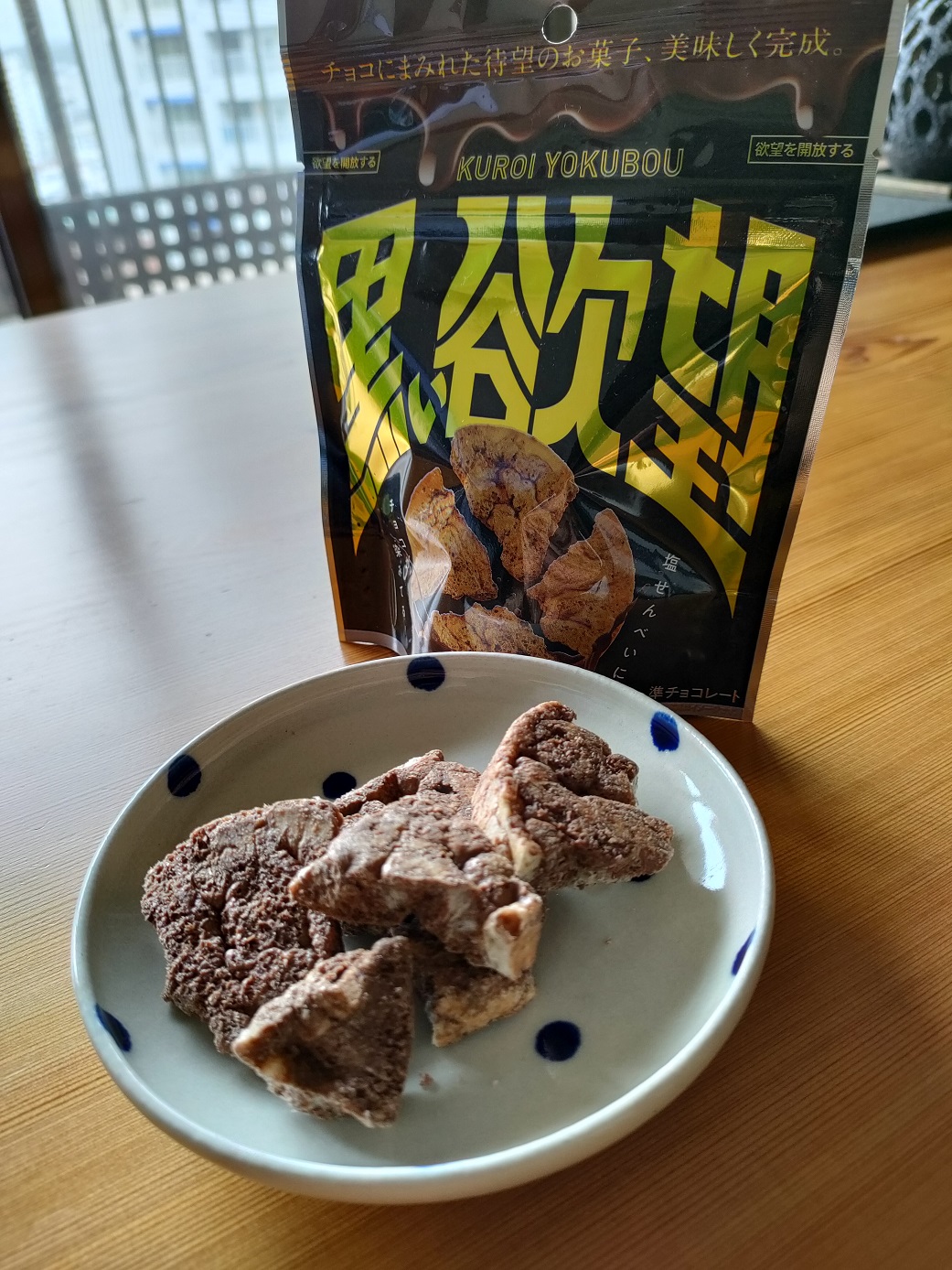 今回の「黒い欲望」はその強めの塩気に控えめの甘さのチョコレートがしっかりと染み込んでいて、持った際は見た目よりズッシリと重さを感じる程。