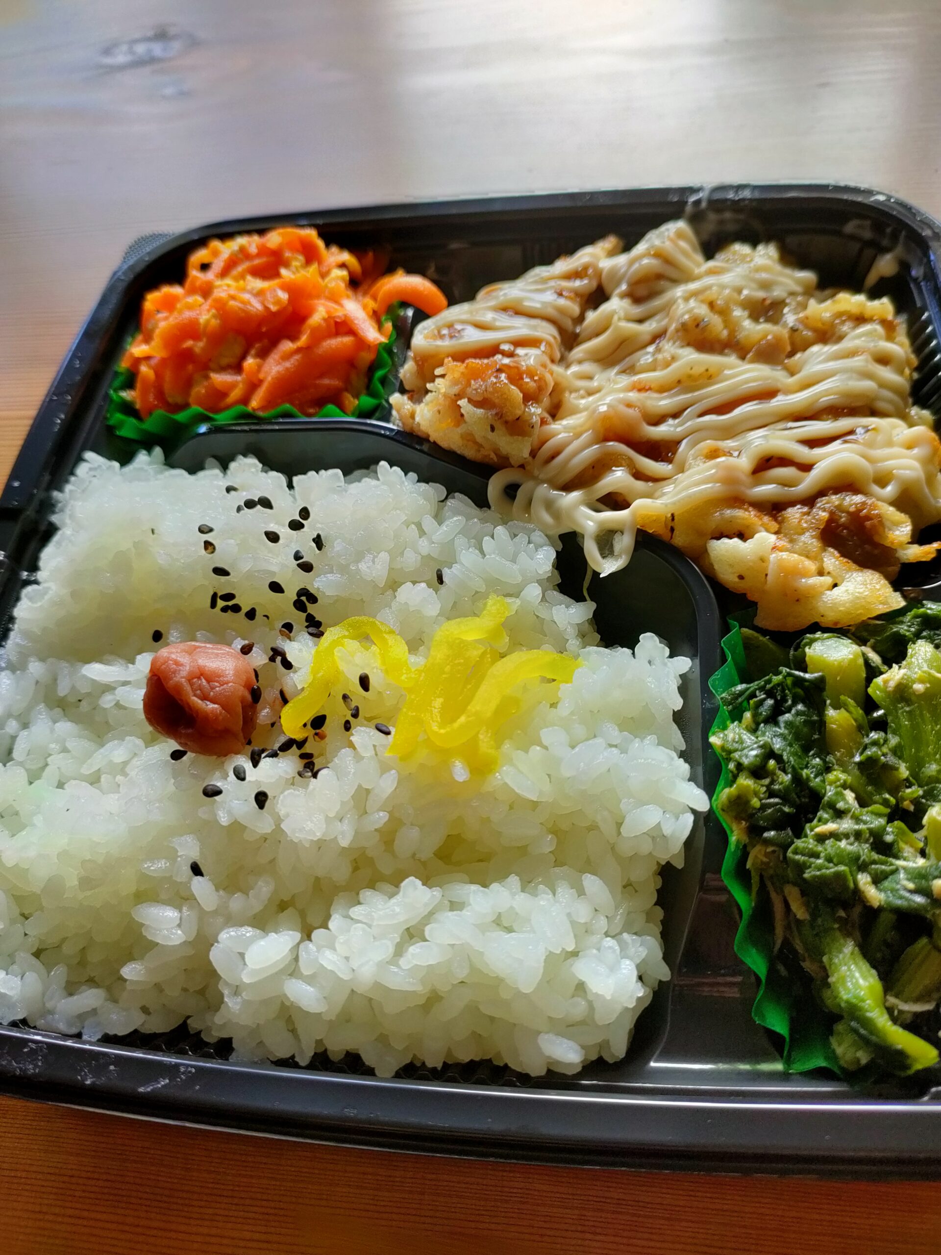 駐車場の中なのでもちろん駐車スペース確保の問題はありませんし、お弁当は種類が多くて美味しいですよ。