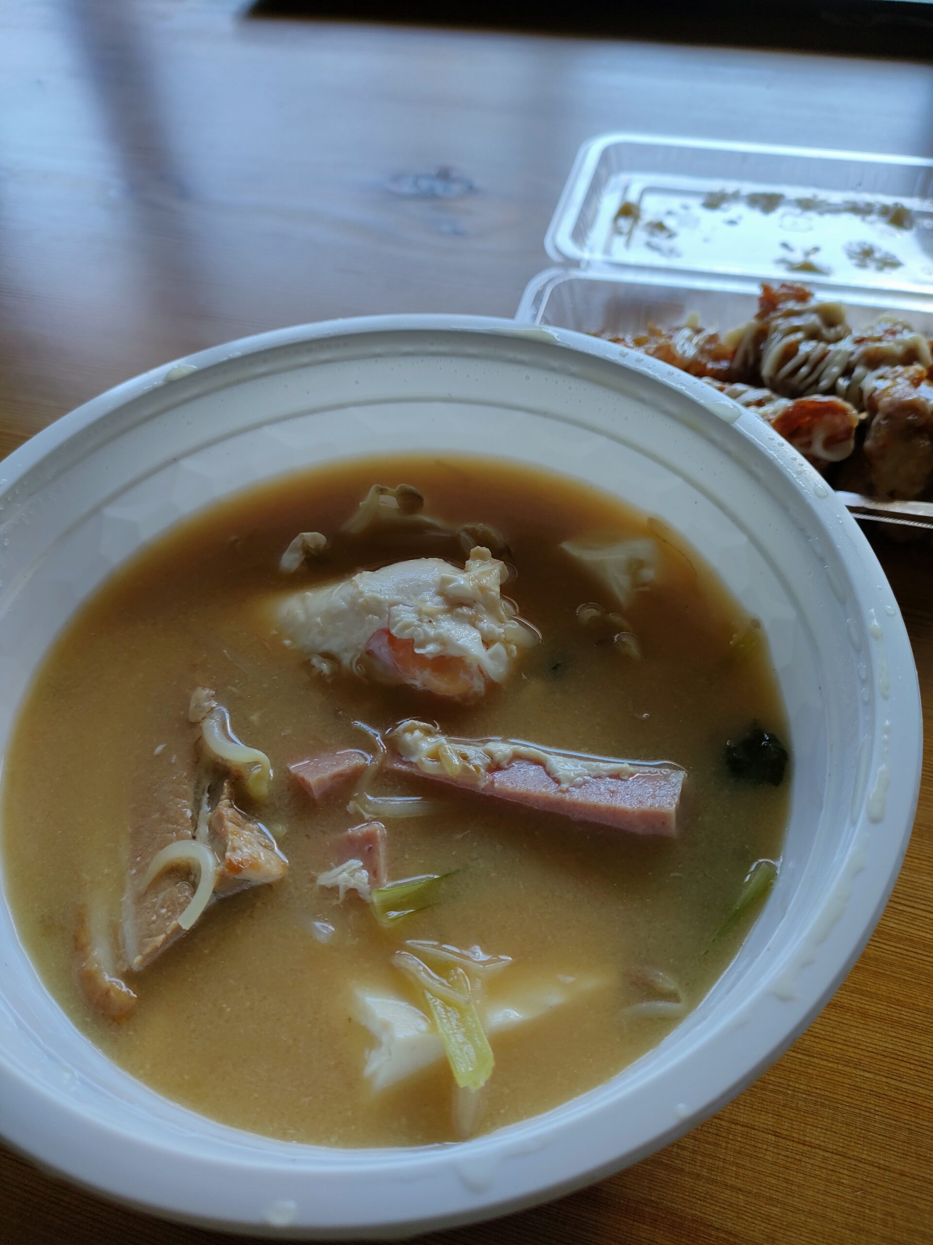 中味は違いますが、東京で勤めていた時の職場周辺で売られていた味噌汁やスープ付き600~700円と比べると一食分の値段としては大分お安いですよね。