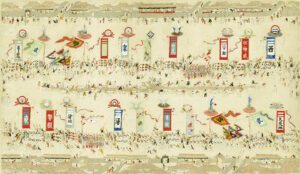 現在、那覇大綱挽保存会に公式に登録されている伝統的な旗頭は14旗ですが、古い資料には20旗描かれているものもあります。