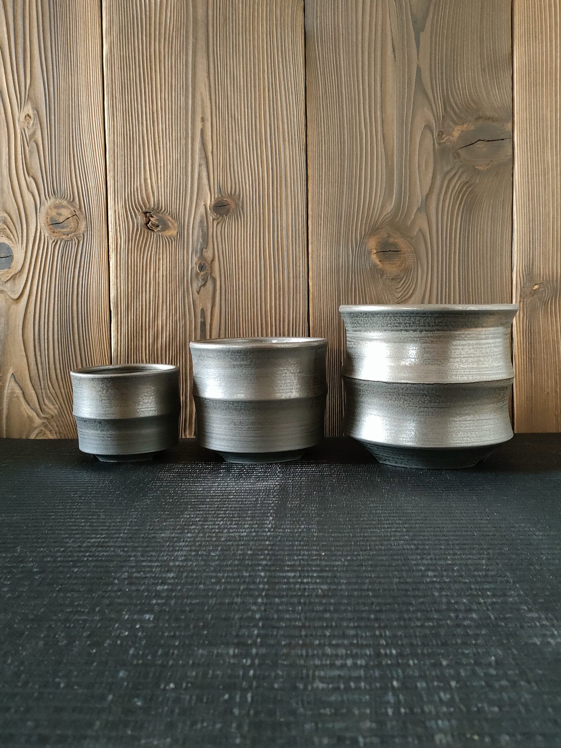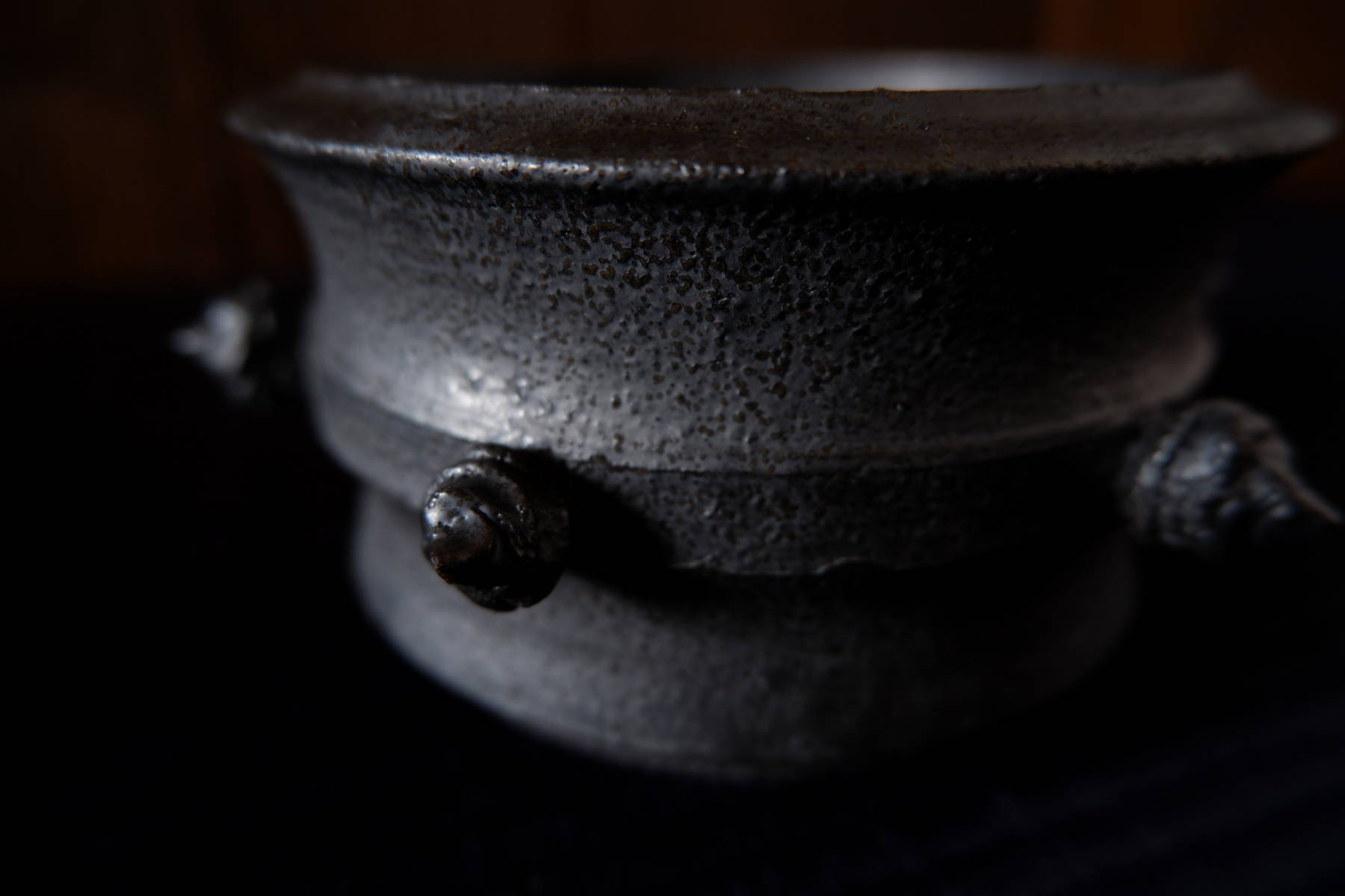 今回から鉢に使用する「真鉄黒」の釉薬は光沢のない黒色で、焼けた鉄肌に漆を塗って仕上げる南部鉄瓶のように、古鉄のような渋い表情が特徴で、私が最も好きな黒釉です。