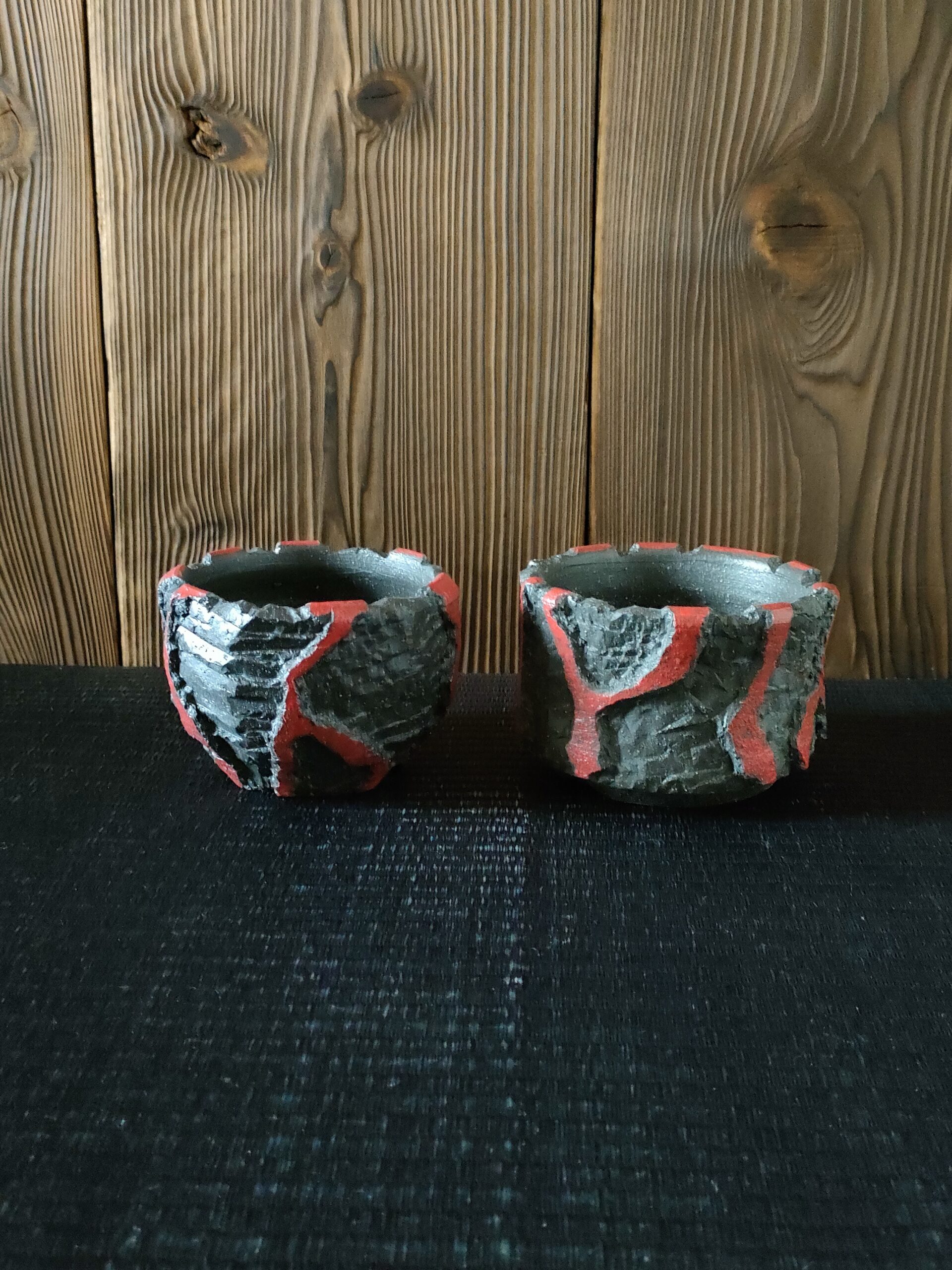 今回も殆どが新作で、植木鉢に「真鉄黒」の新色も加わり、初めて赤絵の具で彩色した作品にも挑戦しました。