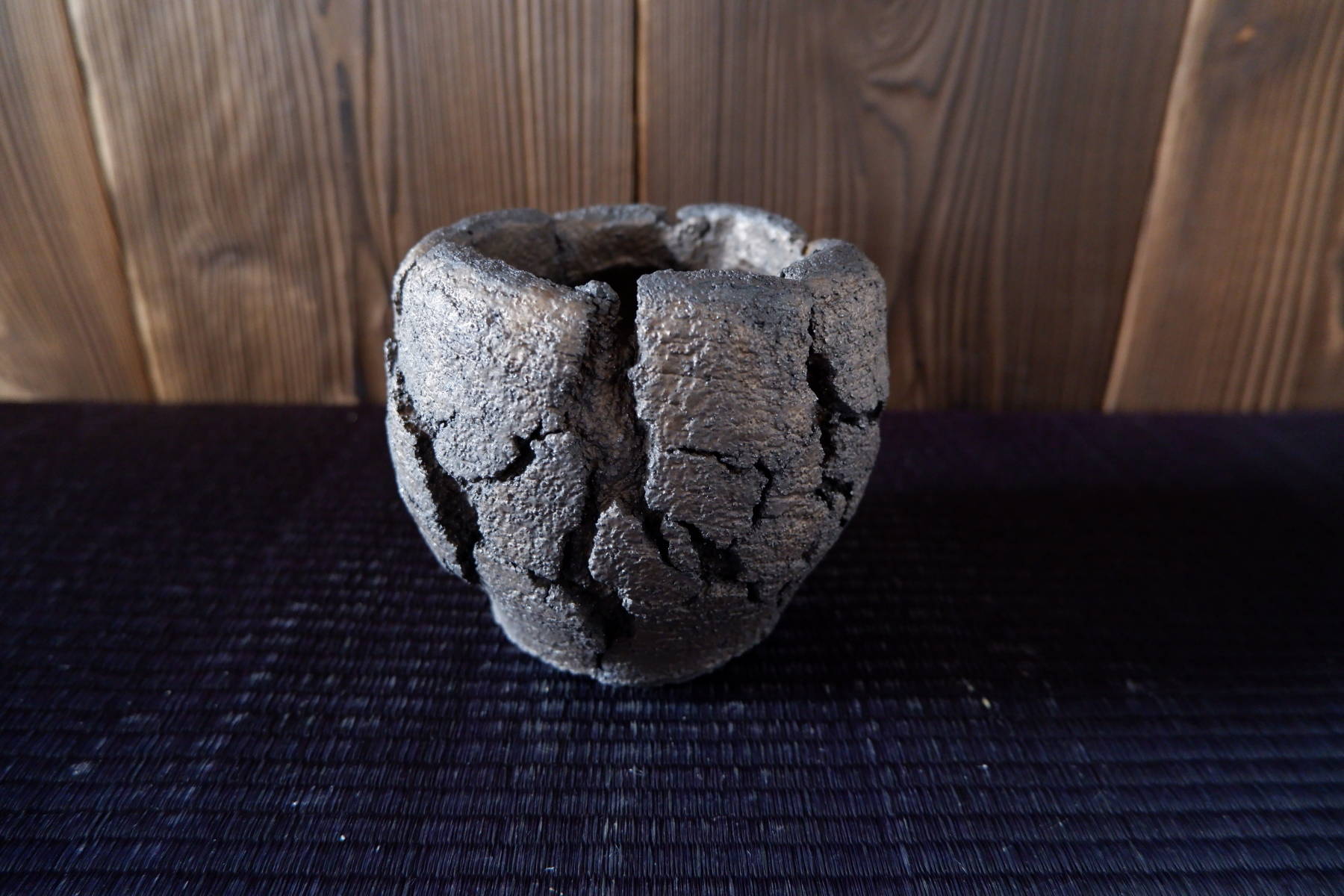 タタラで引いた板状の土を重ねて手捻りで成形したものや、土の塊を天然の流木で叩いて表情を付けてから広げたものなど、新しいやり方にも挑戦してみました。