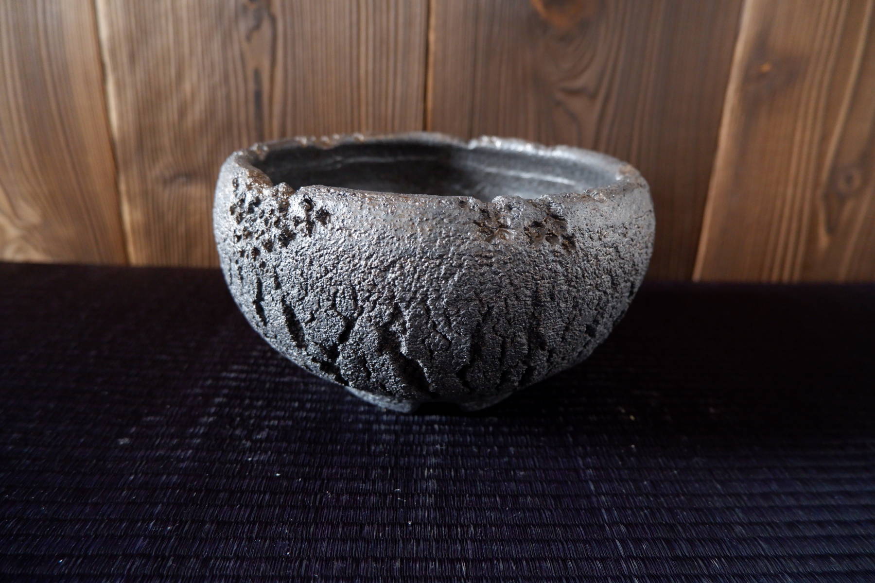 タタラで引いた板状の土を重ねて手捻りで成形したものや、土の塊を天然の流木で叩いて表情を付けてから広げたものなど、新しいやり方にも挑戦してみました。