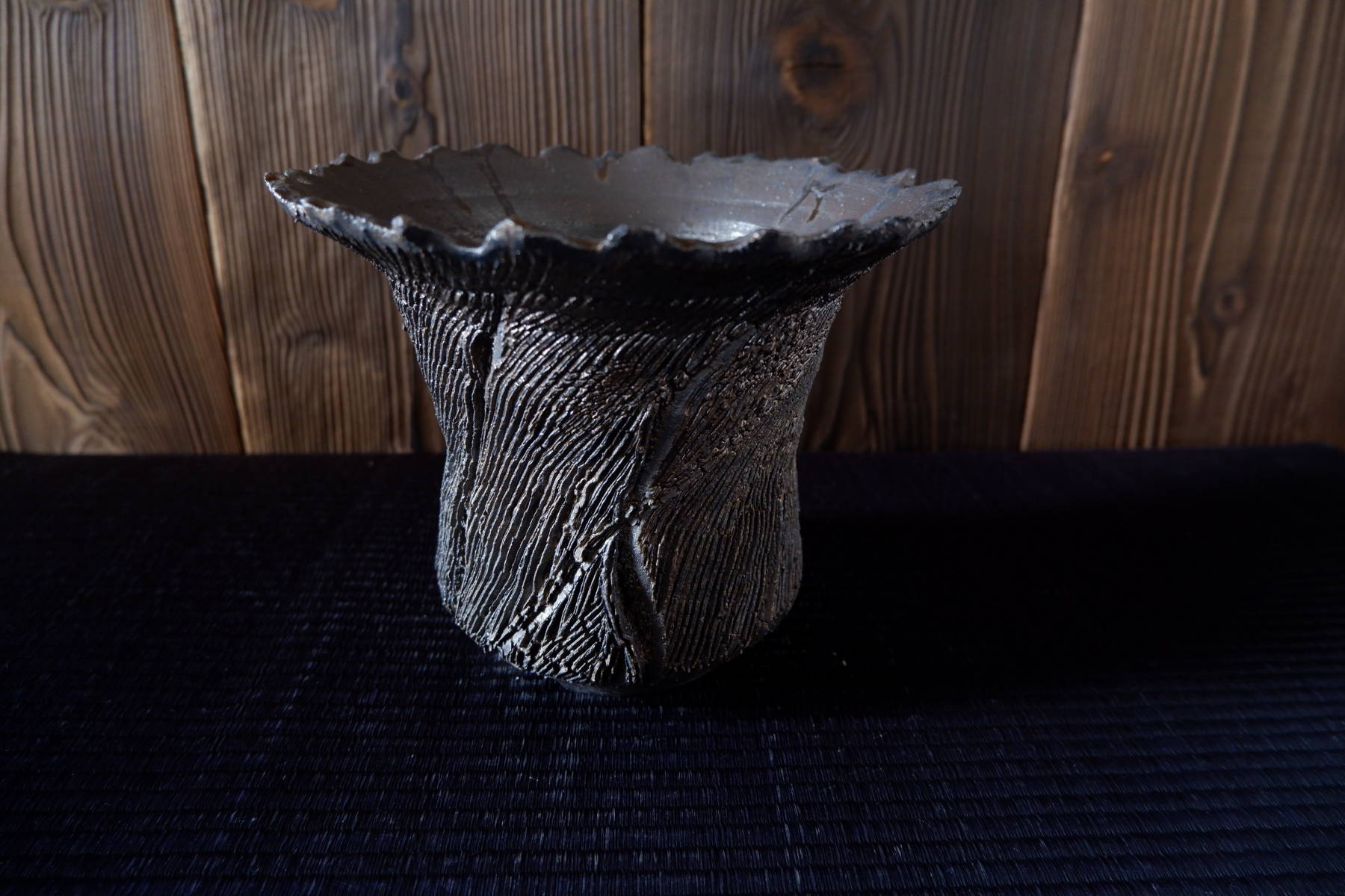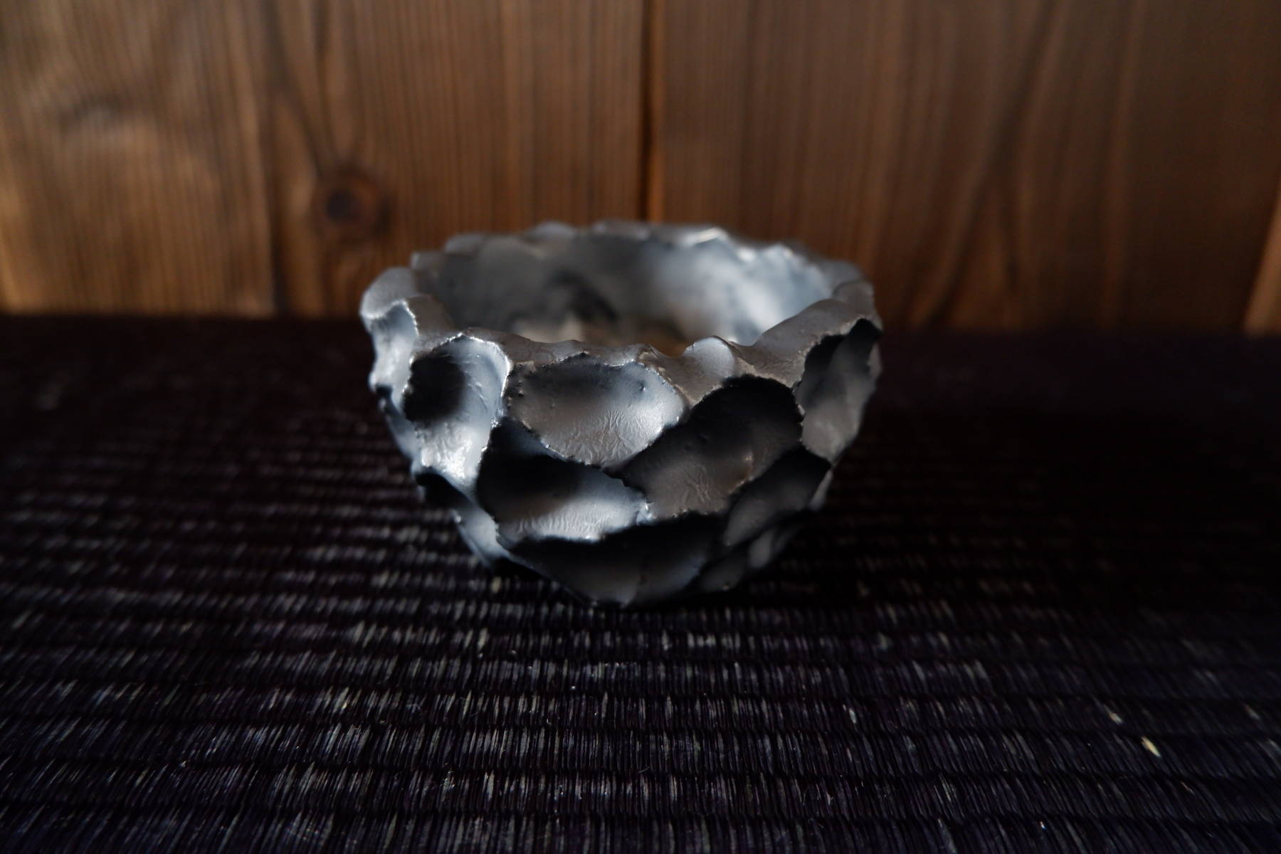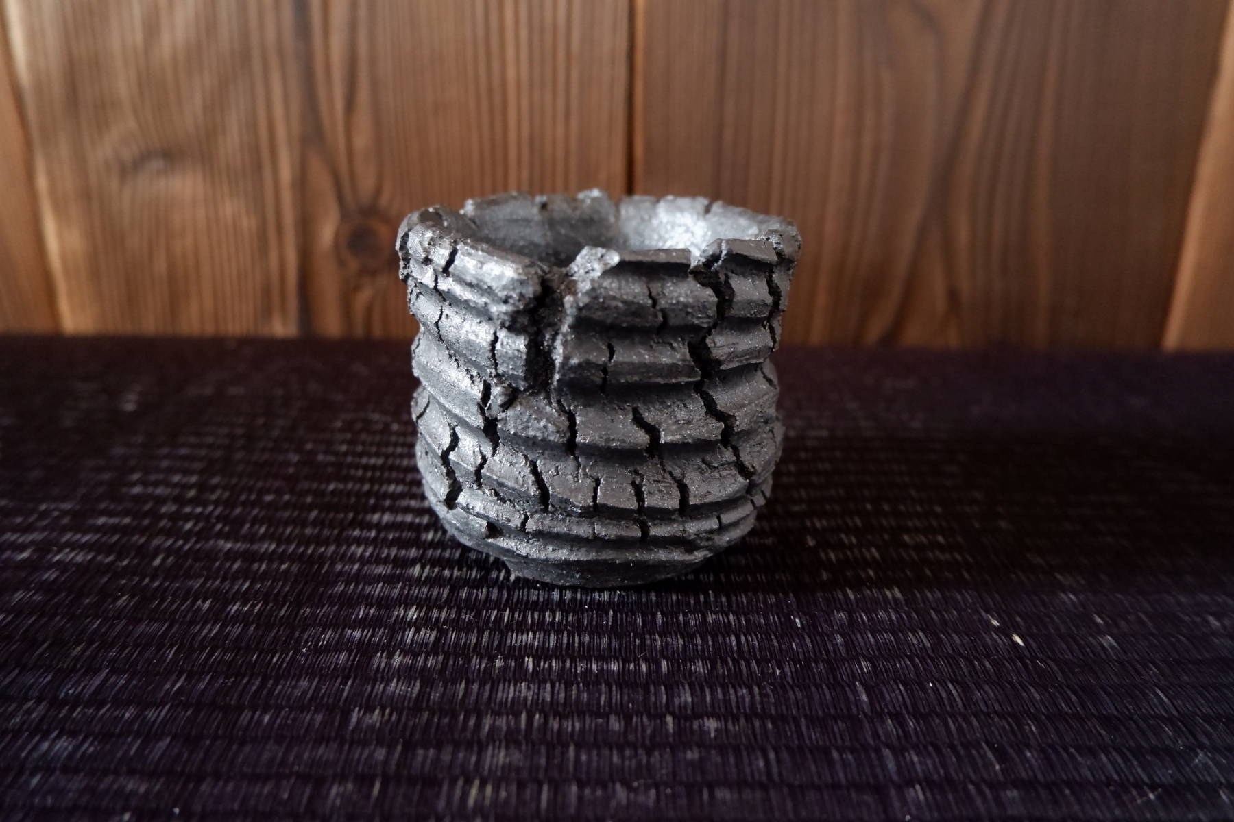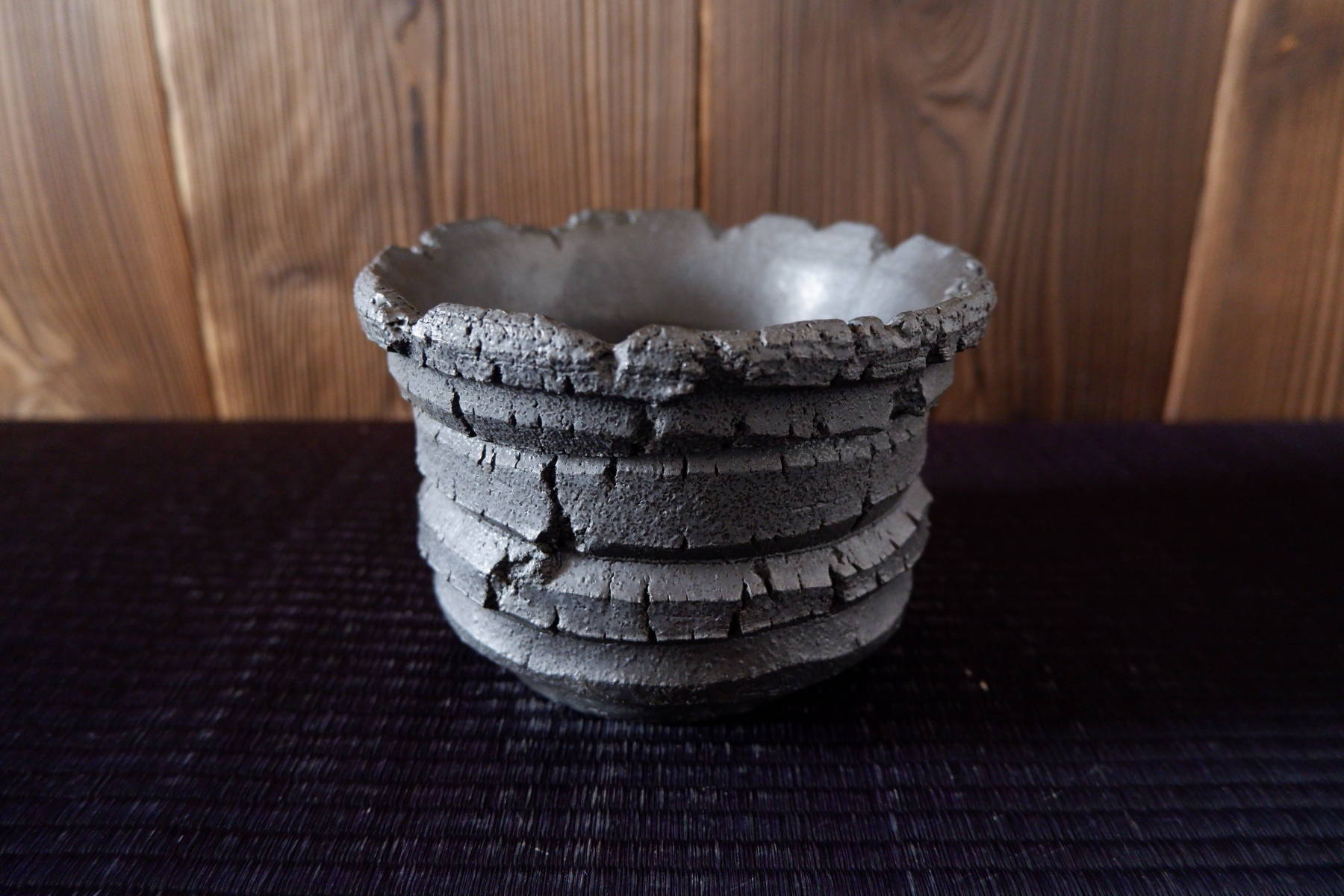 「灰黒」は以前にも1回だけ出品したことがありますが、今回は釉薬のレシピを変えて黒色を強めにし、青みがかったより暗い灰色(チャコールグレー)にしました。