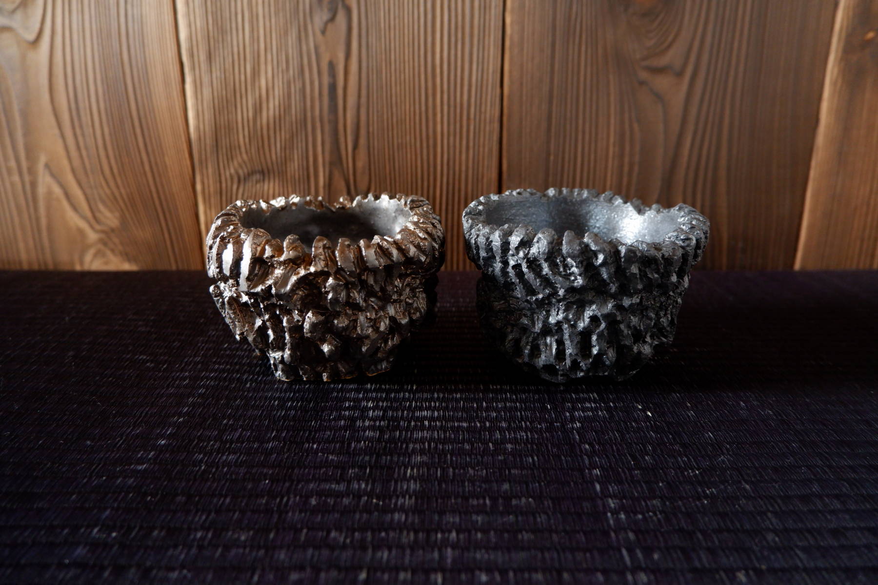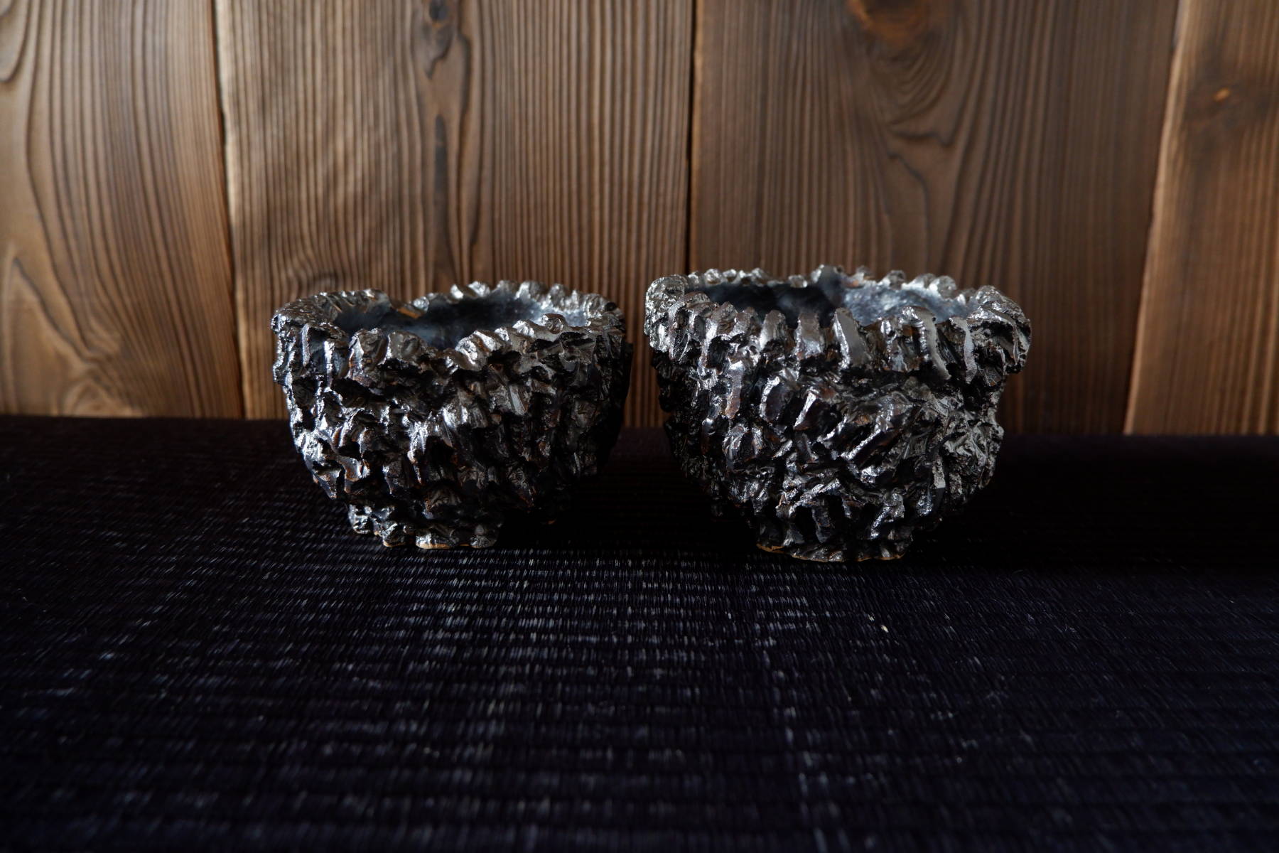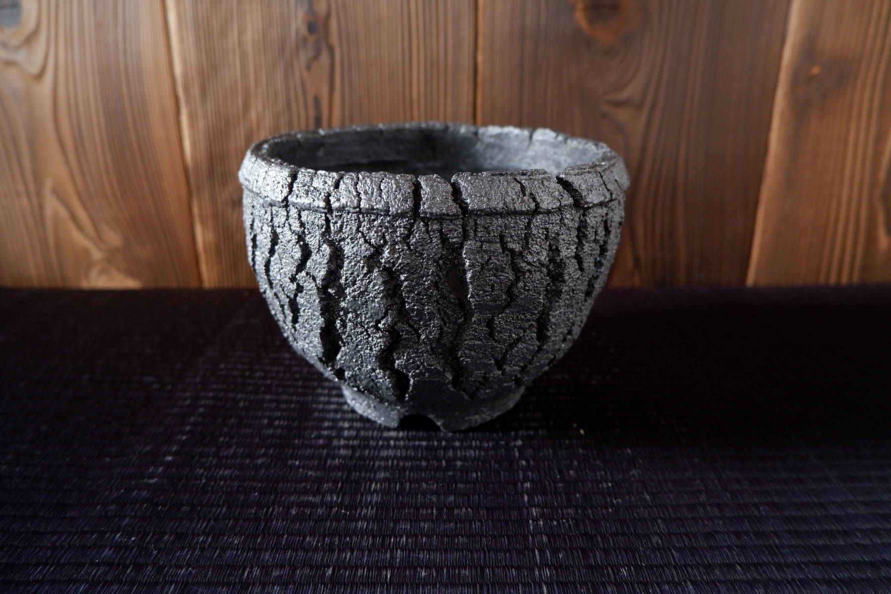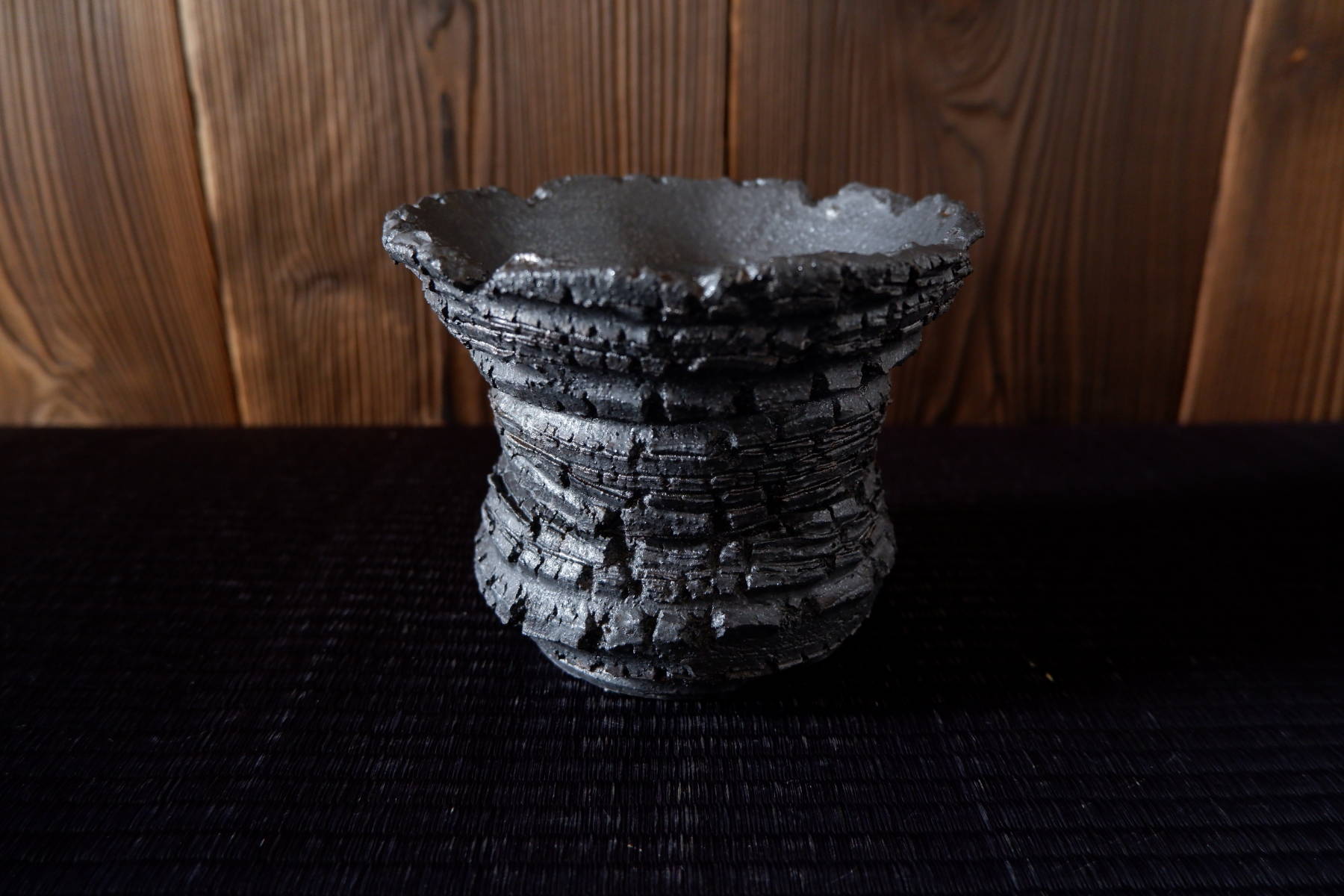 「灰黒」は以前にも1回だけ出品したことがありますが、今回は釉薬のレシピを変えて黒色を強めにし、青みがかったより暗い灰色(チャコールグレー)にしました。