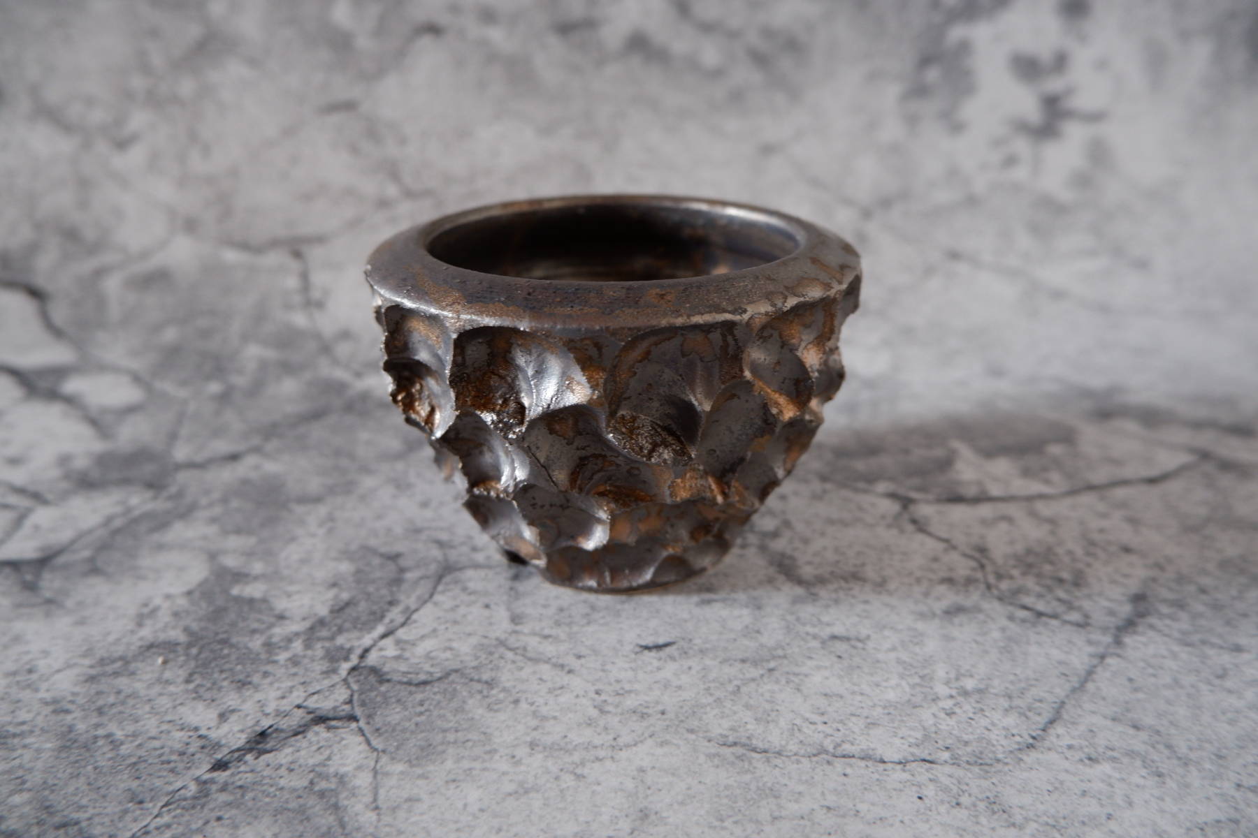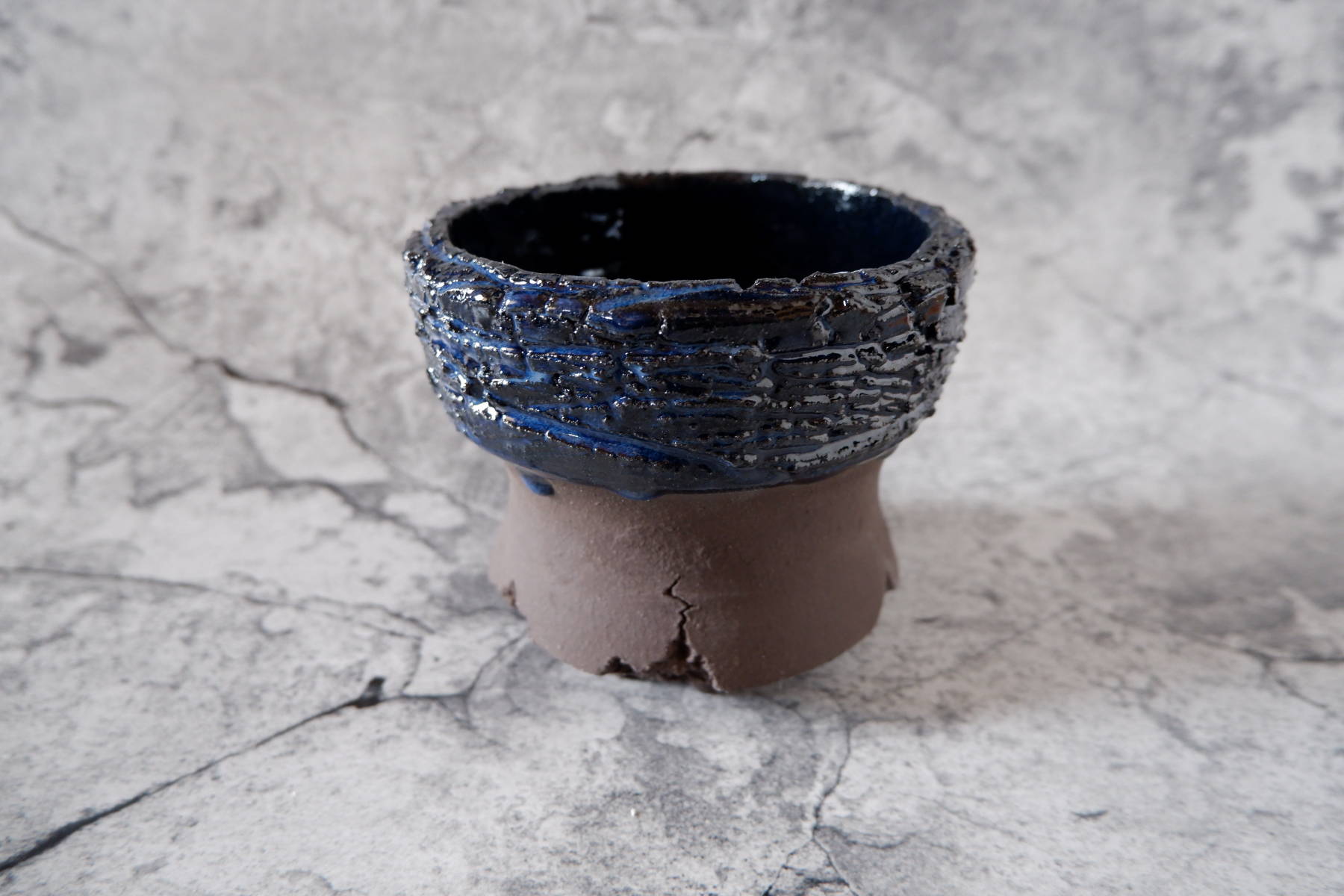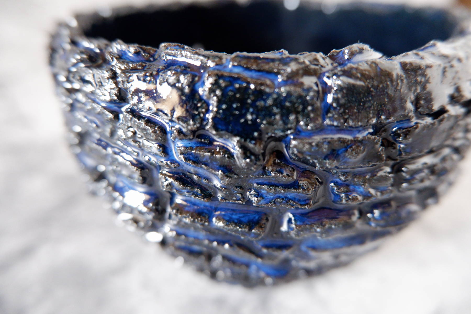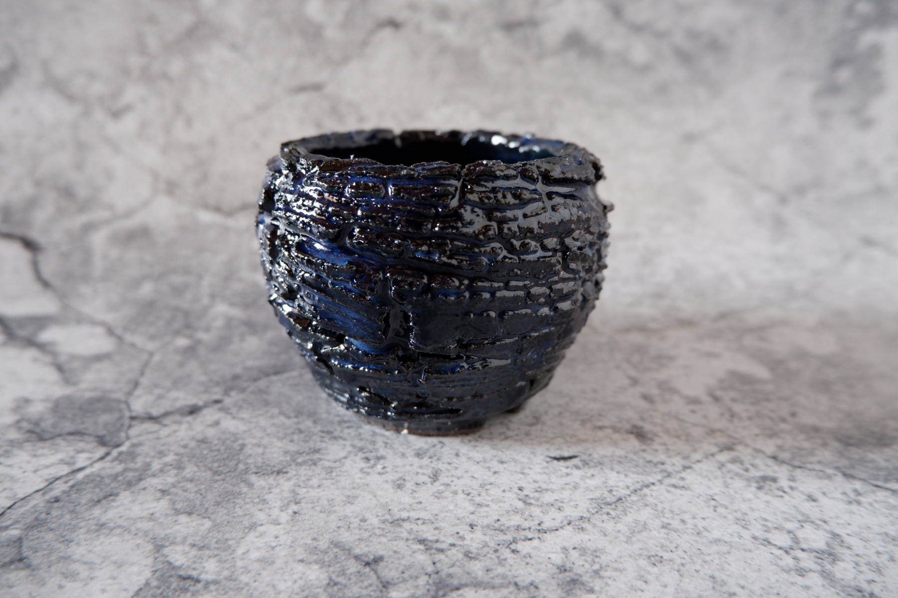 窯変深海碧荒裂紋鉢