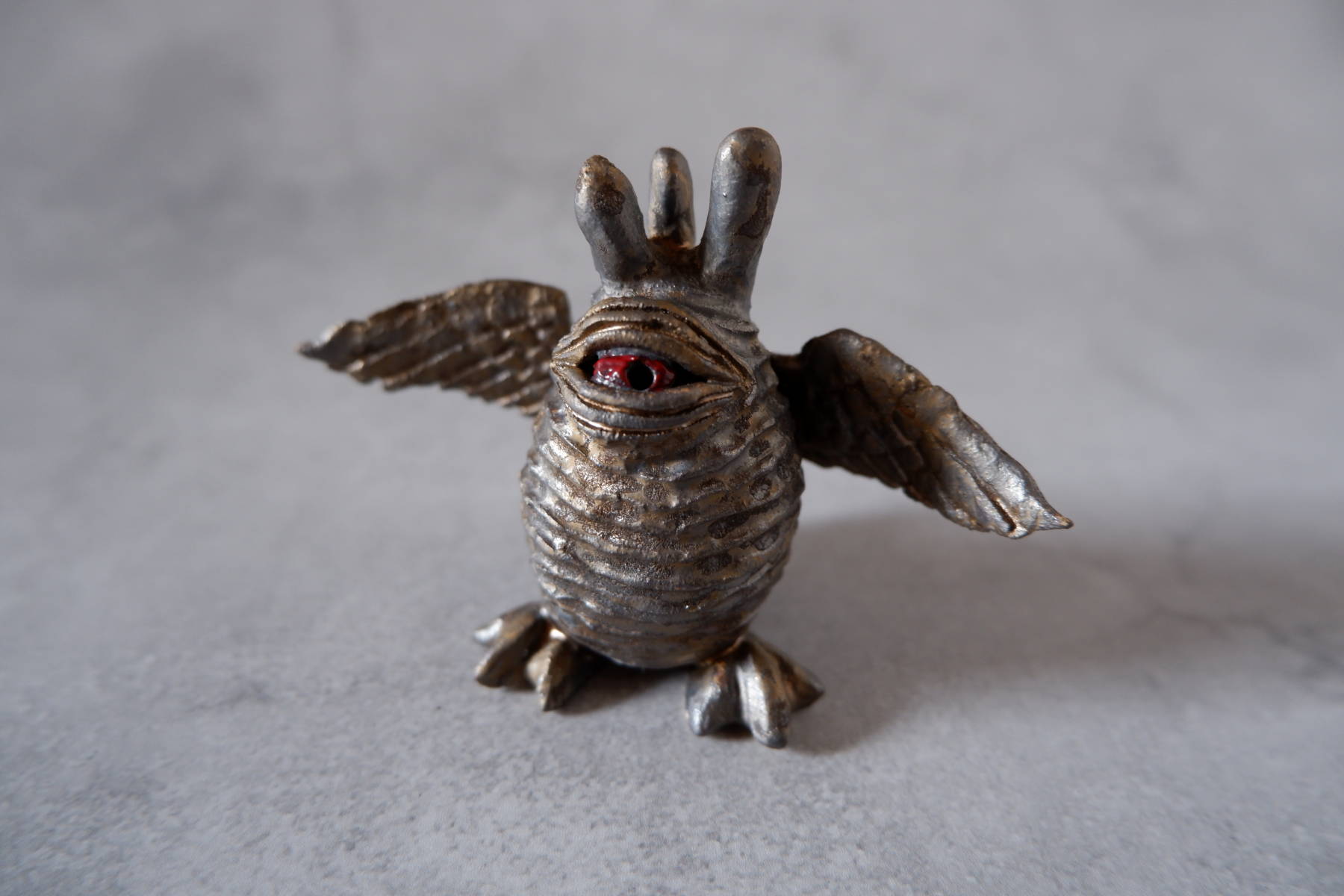 釉薬で焼成後に目の部分だけ上絵の具を焼き付けていまして、2度焼きの分をお値段に反映させていただいて恐縮です。