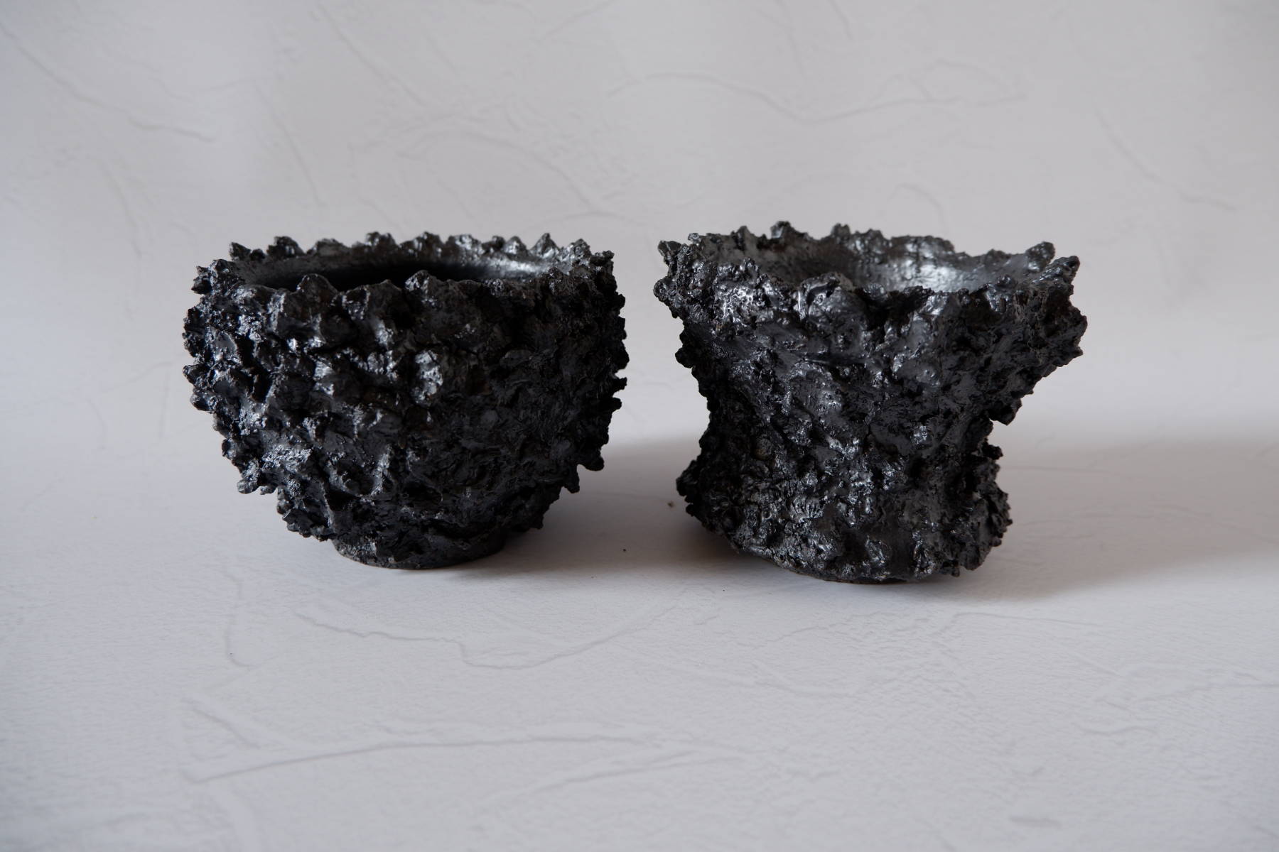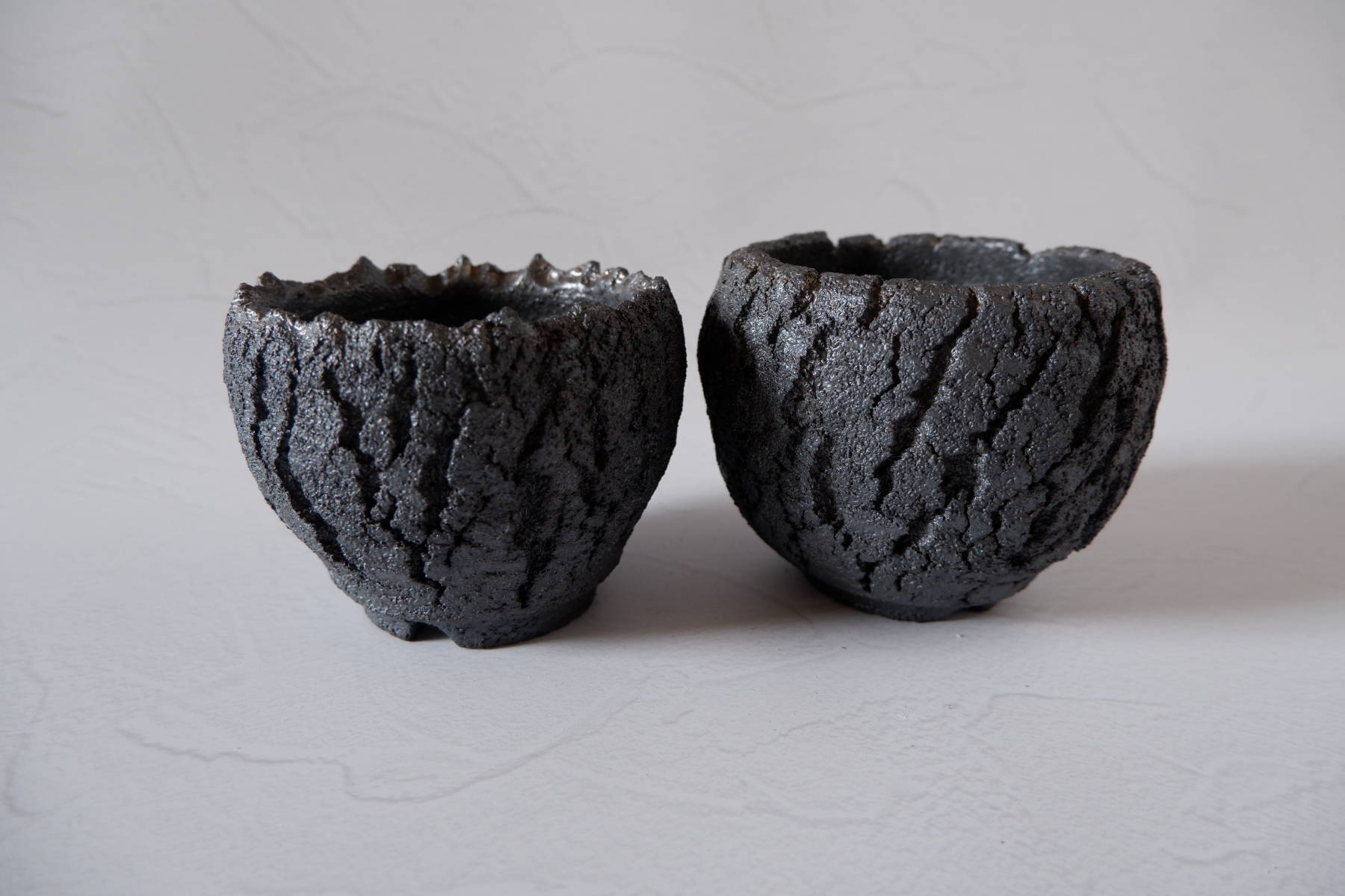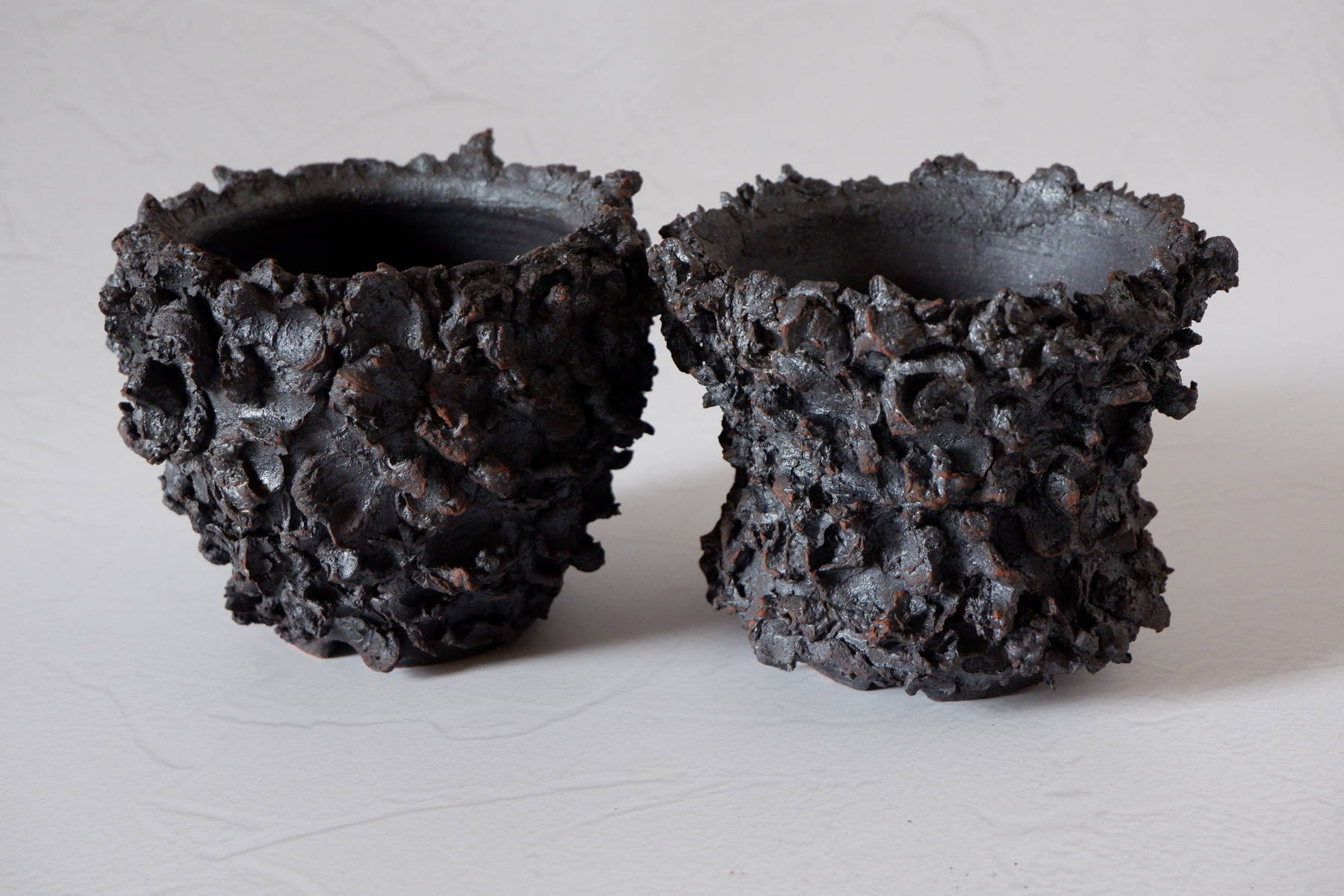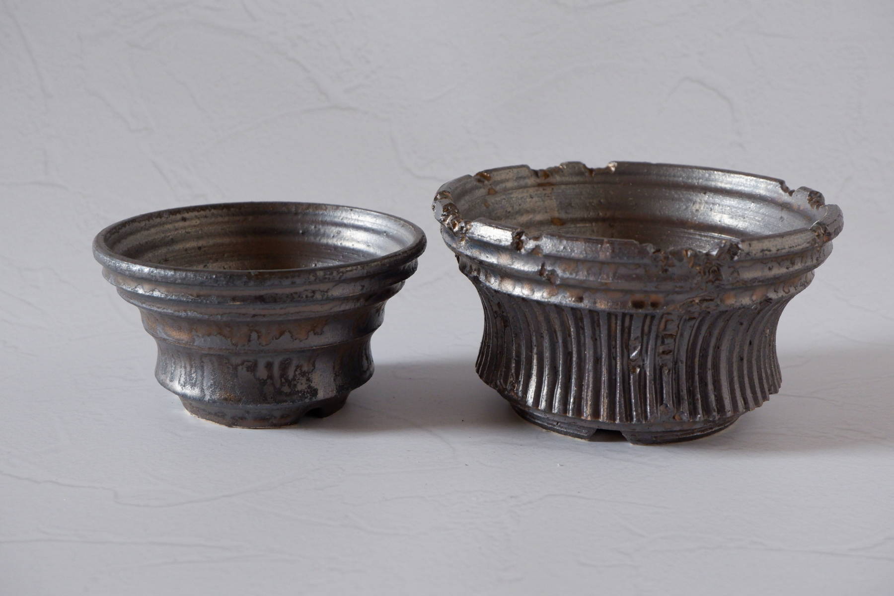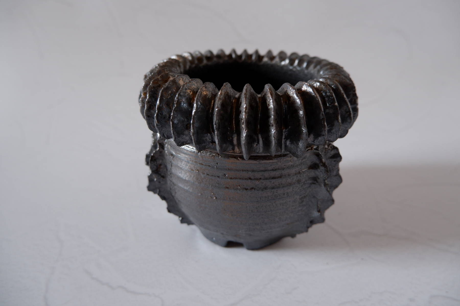 一方の「黒鬼」は魔界鉢などに使用しているシットリした発色の黒釉で覆われています。