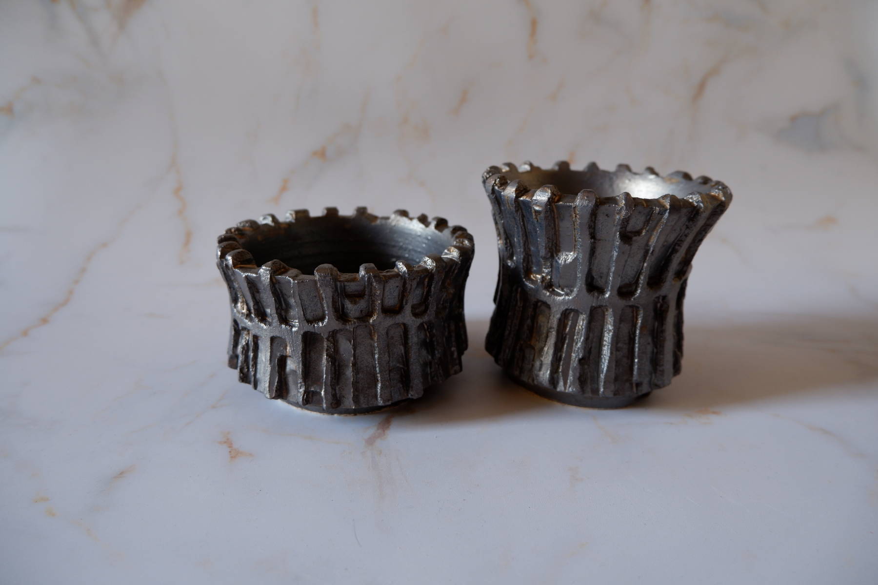 黒土の方には細かい気泡が現われる釉薬を部分的に塗りましたので、より溶岩らしい表情になりました。