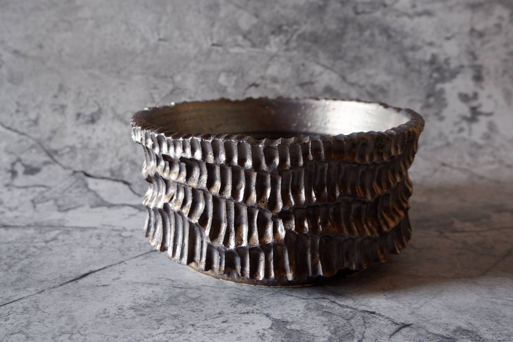 黄土黒化粧鉢