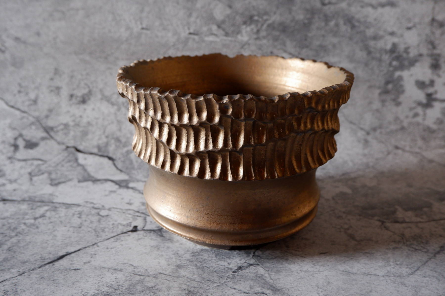 7号燻し金彩盆栽鉢663 塊根植物 多肉植物 アガベ グラキリス パキプス 盆栽 植木鉢 作家鉢 鉢皿 沖縄