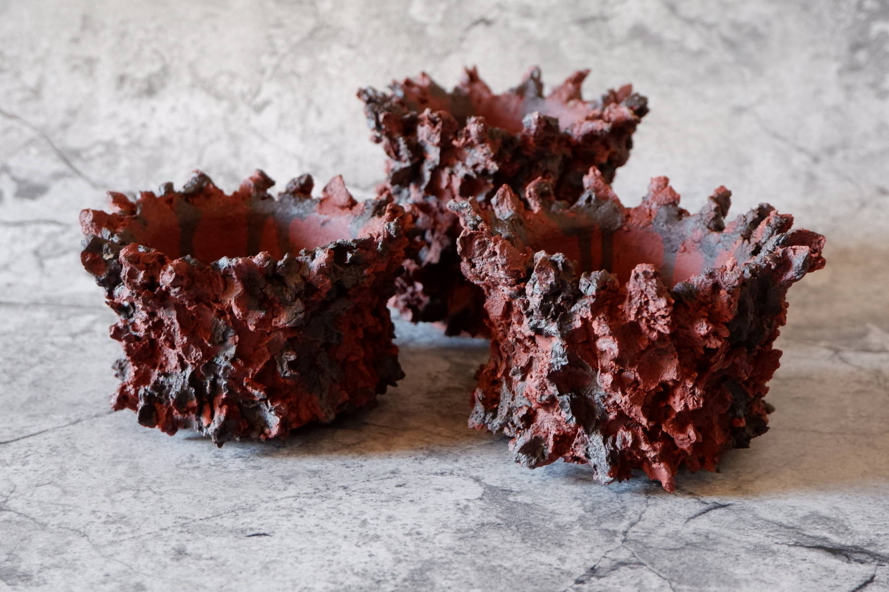 3.5号富士砂溶岩赤鉢752 塊根植物 多肉植物 アガベ グラキリス パキプス 盆栽 植木鉢 作家鉢 鉢皿 沖縄
