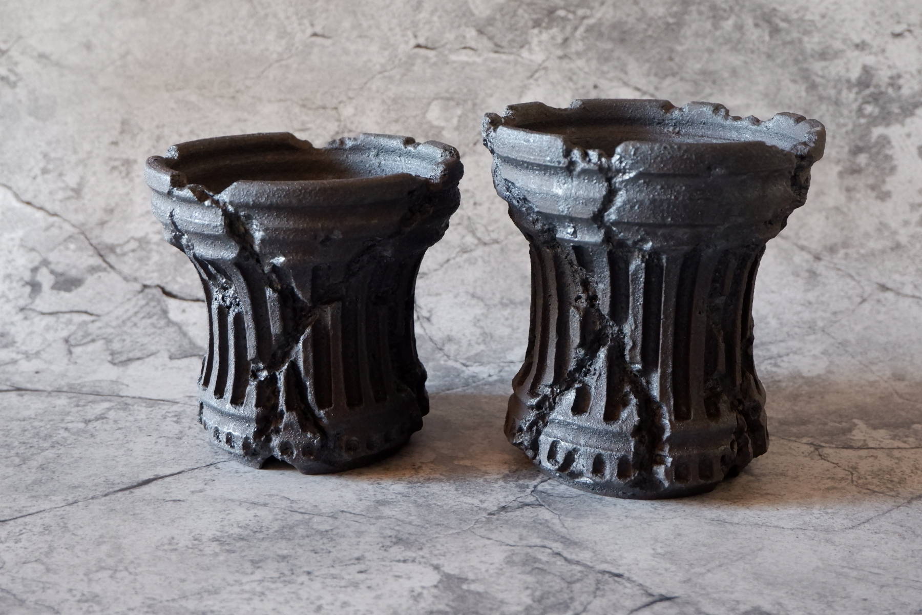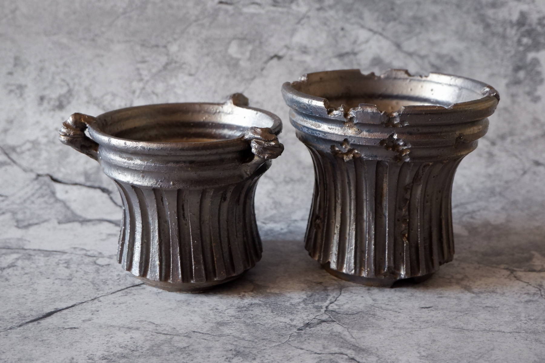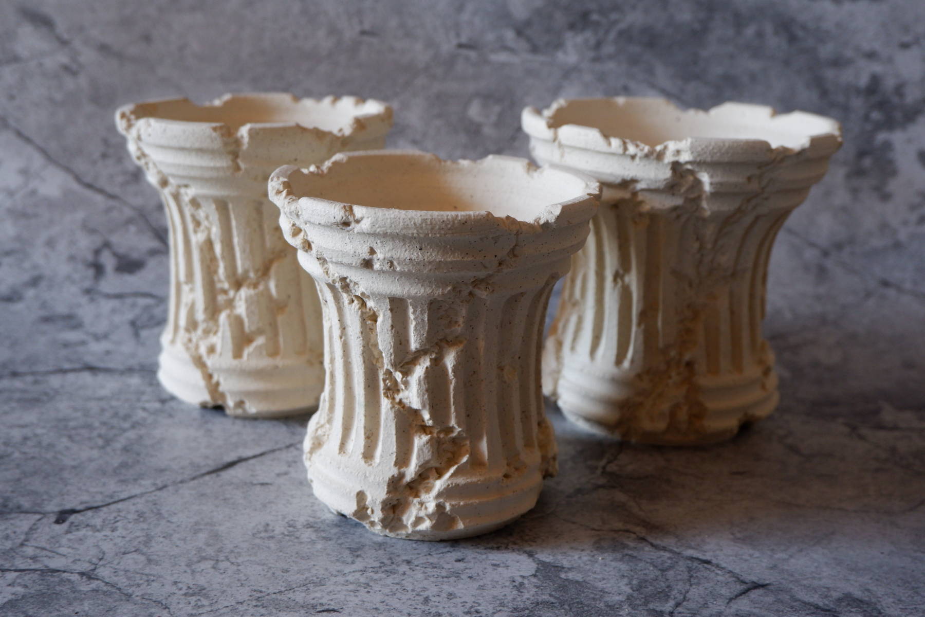 ギリシャやローマの建築に見られる柱(コラム)をモチーフに、スラっとした丈のあるフォルムで、経年劣化を感じさせる鉢を作ってみました。