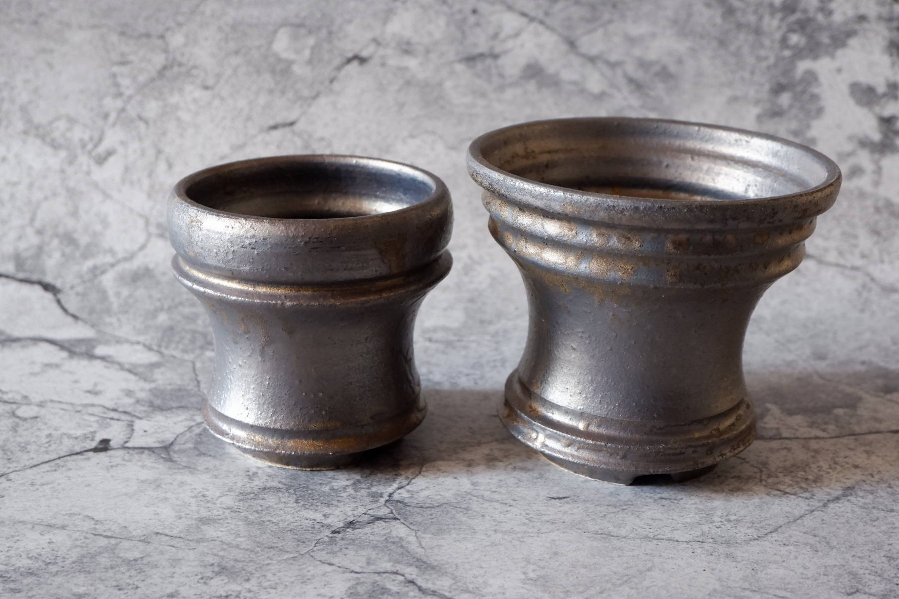 4号燻し金彩鉢716 塊根植物 多肉植物 アガベ グラキリス パキプス 盆栽 植木鉢 作家鉢 鉢皿 沖縄