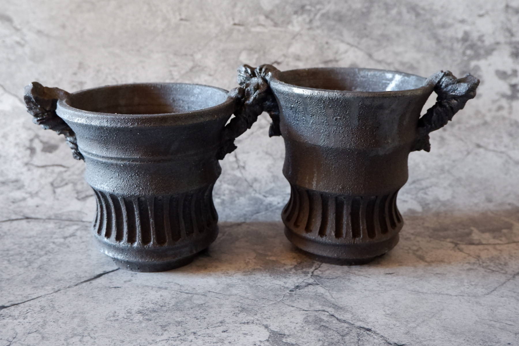 お客様からのご依頼もありまして、2方や3方向の「耳付き」の鉢を作りました。