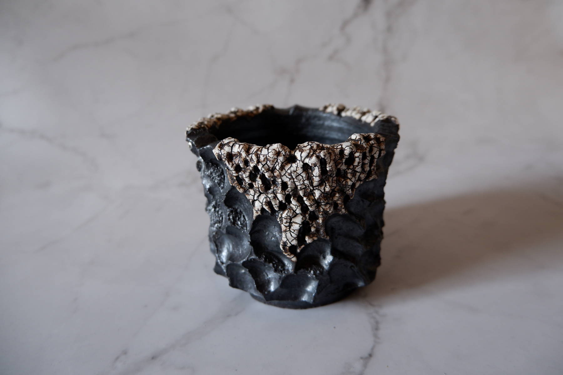 3号貫入白化粧黒鉢993 塊根植物 多肉植物 アガベ グラキリス パキプス 盆栽 植木鉢 作家鉢 鉢皿 沖縄