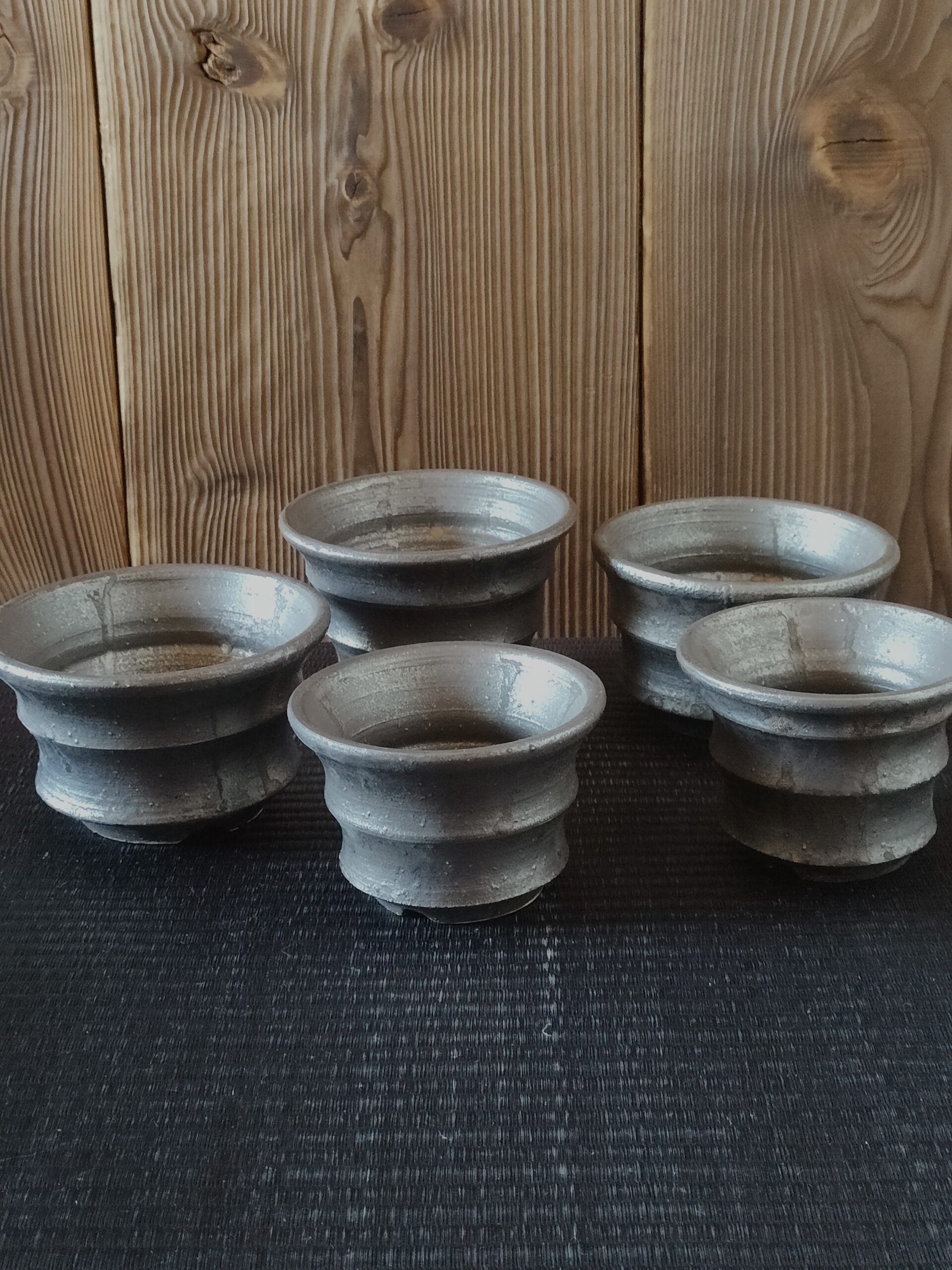 下の画像の奥の2つは黒金彩鉢です。