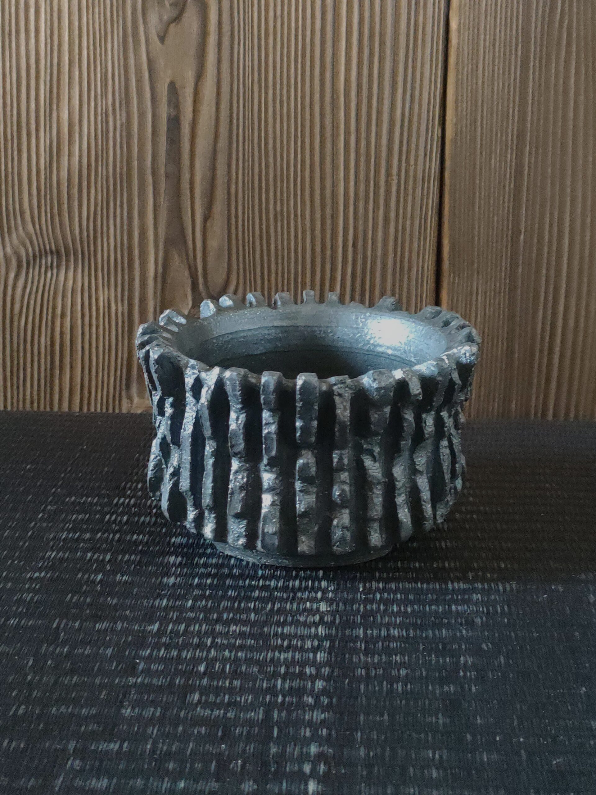 縁の辺りに土を塗り付けまして凸凹にしています。
