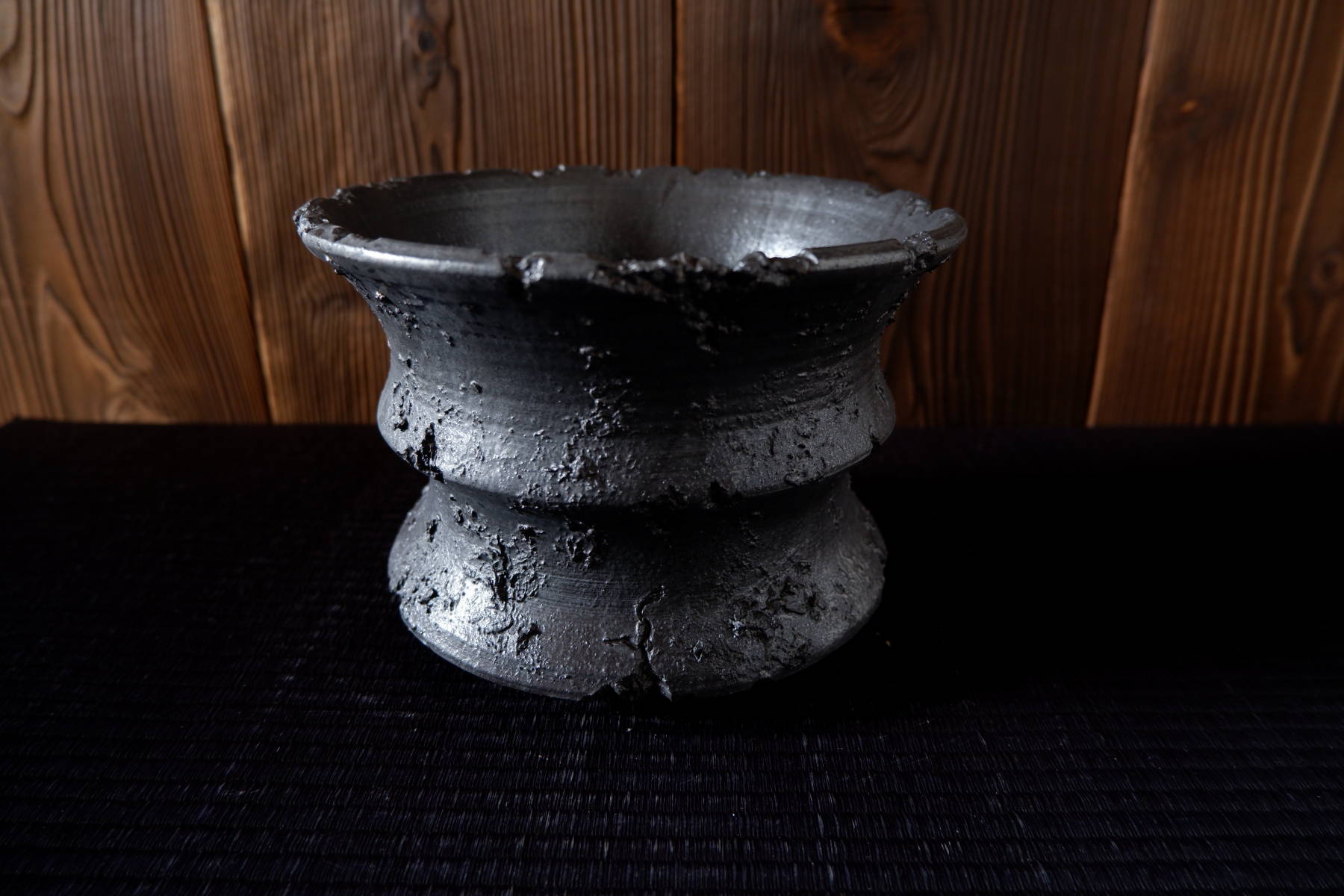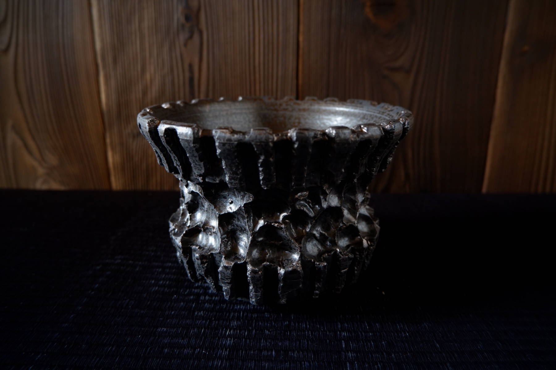 今回の裂紋はいつものとは異なって、ひび割れ模様に虫喰いのような彫りを加えて溶岩が固まったような感じのものも。