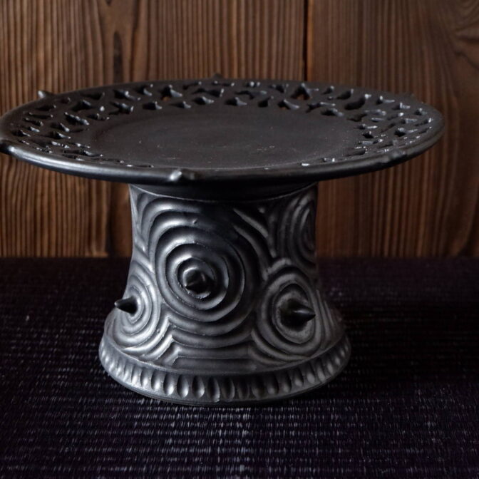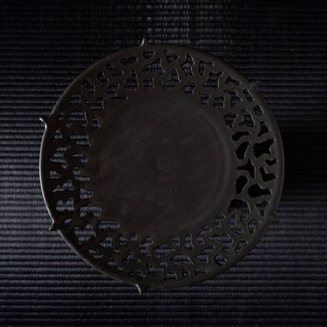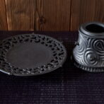 流紋黒透かし彫り飾り台・飾り皿1 鉢皿 植木鉢 やちむん 沖縄