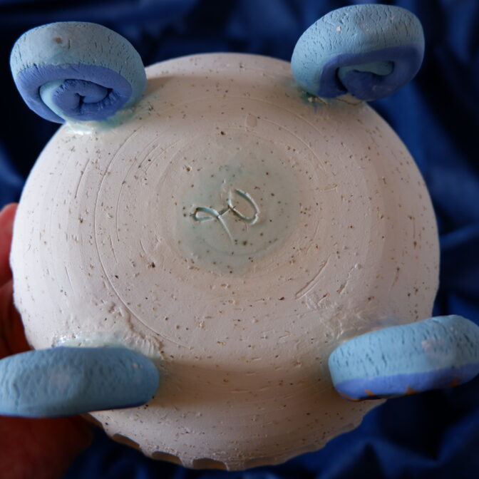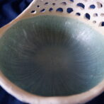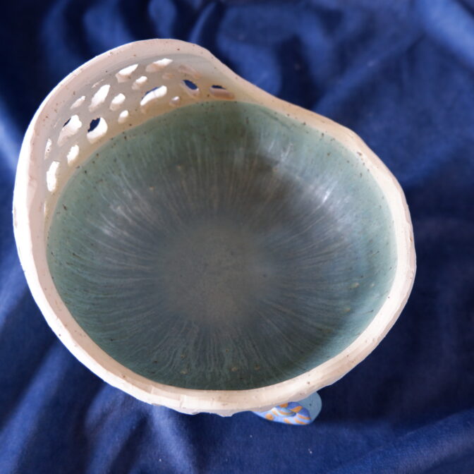 内側はエメラルドグリーンの釉薬を掛けて焼きました。ブルーのグラデーションをお愉しみいただければ幸いです。