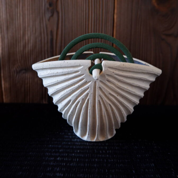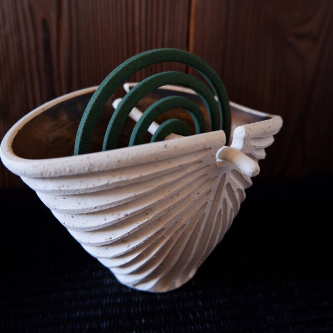 中心から放射線状に鎬模様に彫った蚊取り線香ホルダーです。