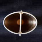 珊瑚砂の質感を残すために、ボディ外側には施薬せず、内側のみ光沢を抑えた金彩の釉薬を掛けました。