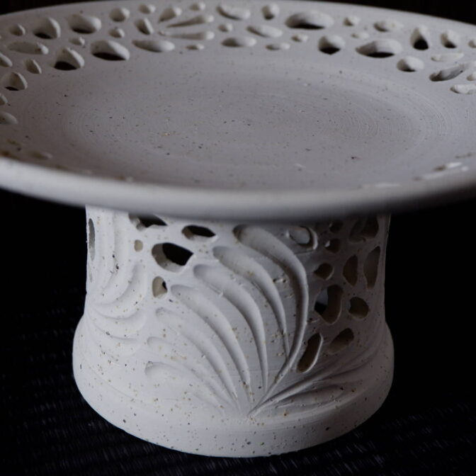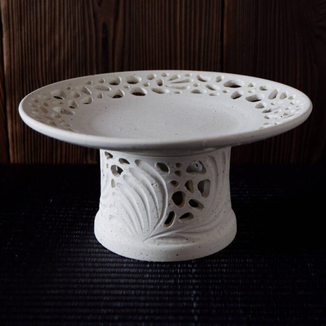 上皿の周囲に透かし彫りを施し、台には彫模様を加えました。