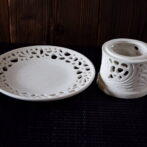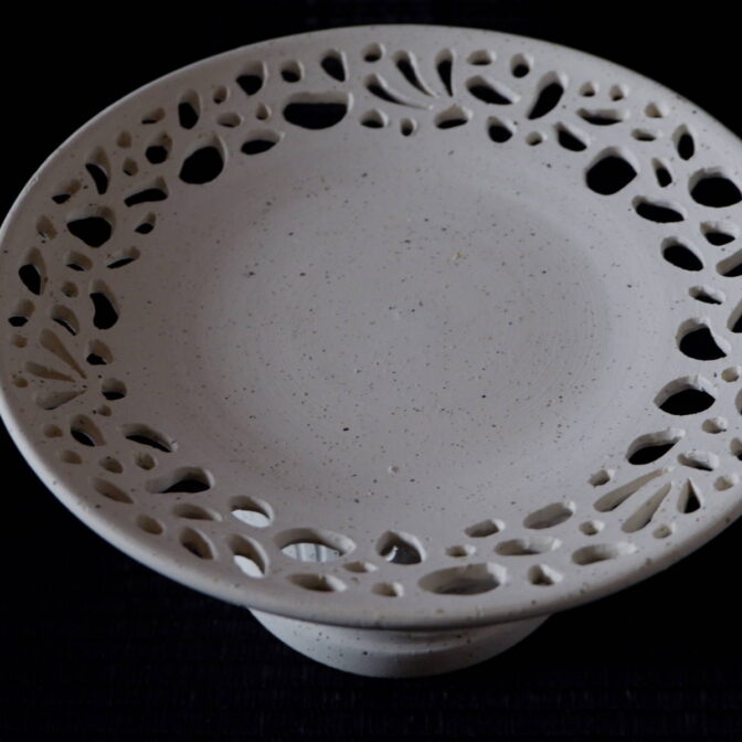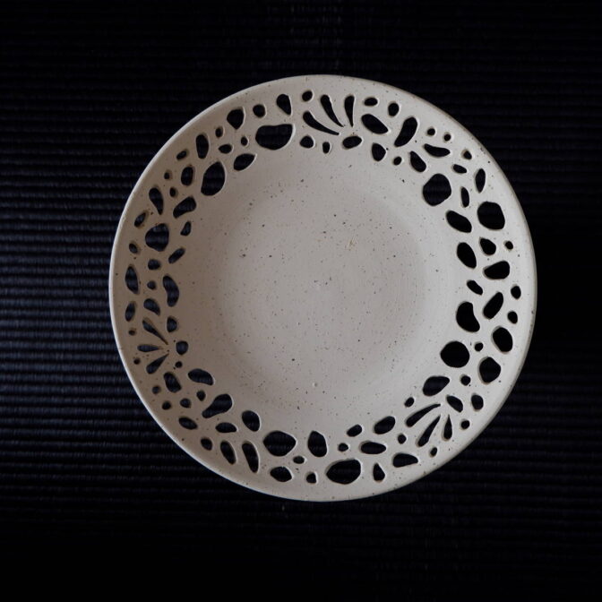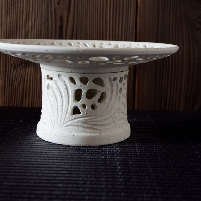 珊瑚土透かし彫り飾り台・飾り皿1 やちむん 沖縄