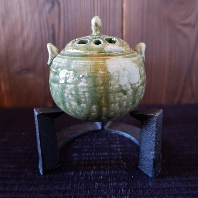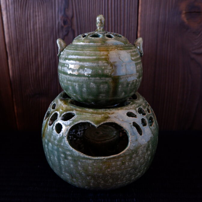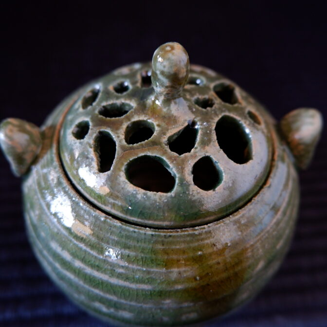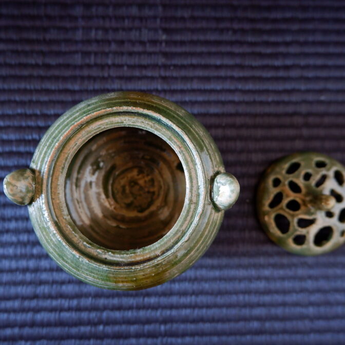 アロマオイルや丁子などを焚いたりするために、蓋は透かし彫りを施しています。