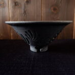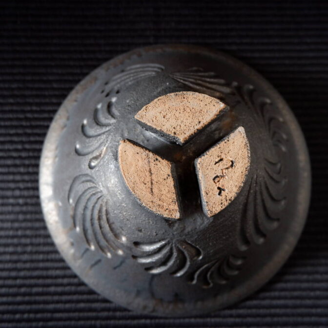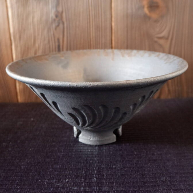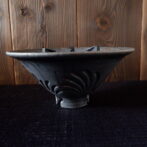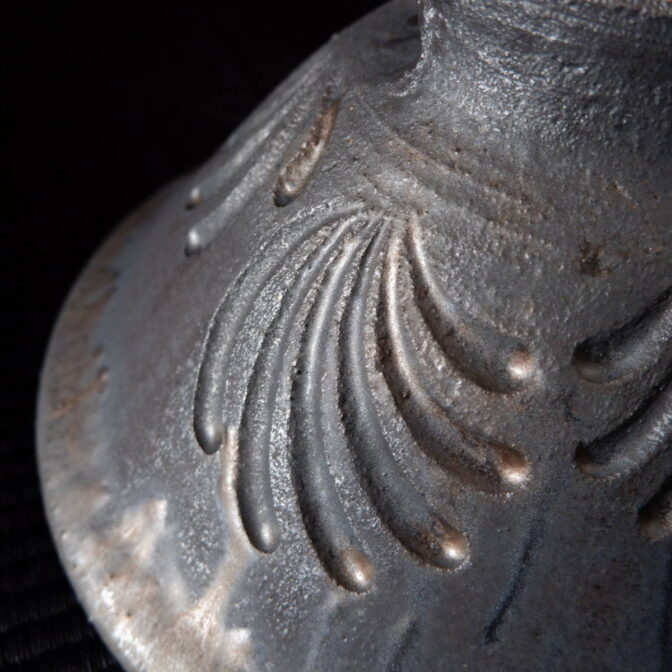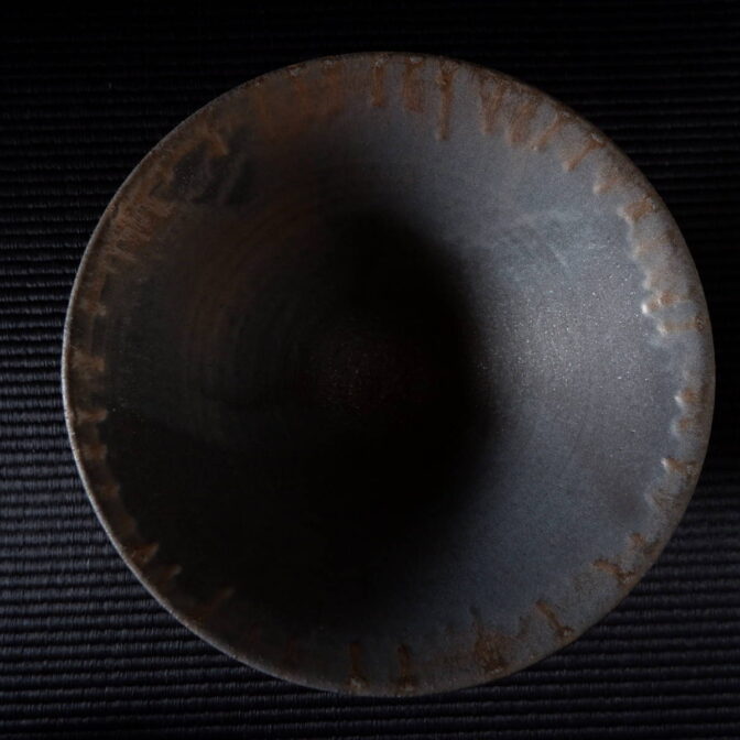 全体に燻したような黒みがかった光沢のない渋い金彩釉を掛けました。