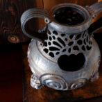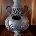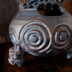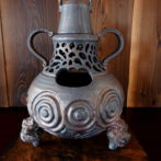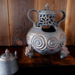 耐熱土に渋い光沢のある金彩釉を施しました。