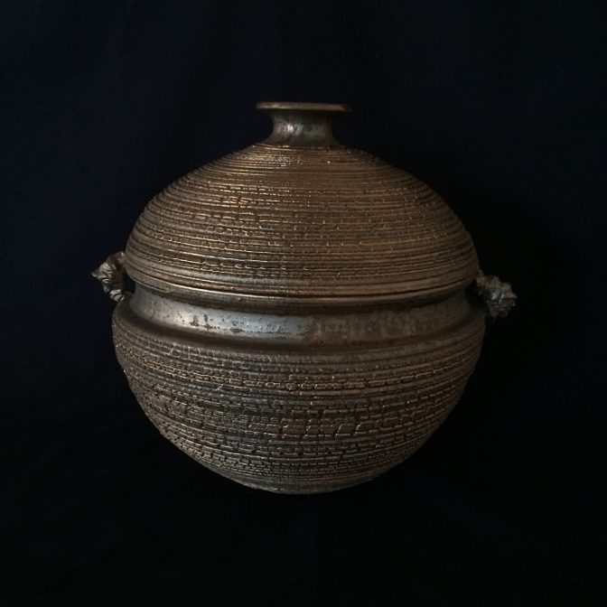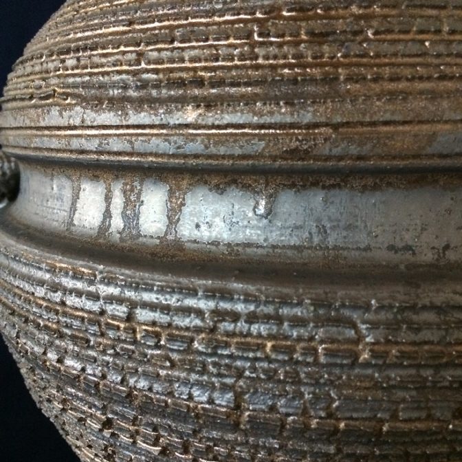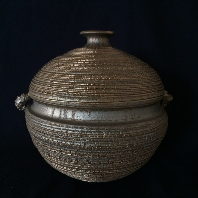 一見茶色く見えますが、金彩の釉薬を施し燻したような渋い光沢を有しています。
