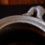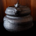 荒々しさを表現するために、ザラザラとした質感の土で作り、全体を黒い釉薬で仕上げました。