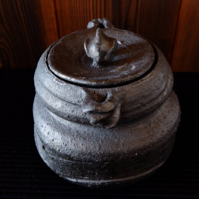 黒の美しさを求める弊工房の「黒彩シリーズ」の水指です。