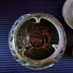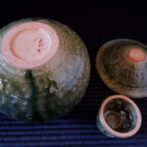 色は3点とも織部釉をベースにアクセントとして伊羅保釉を加えて流紋の景色にしました。