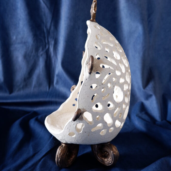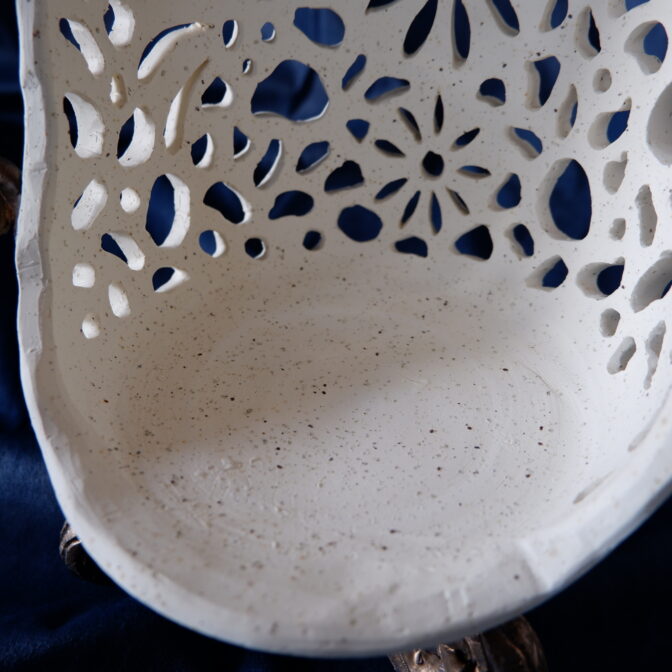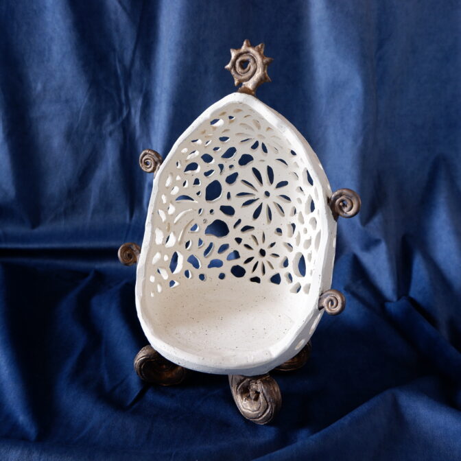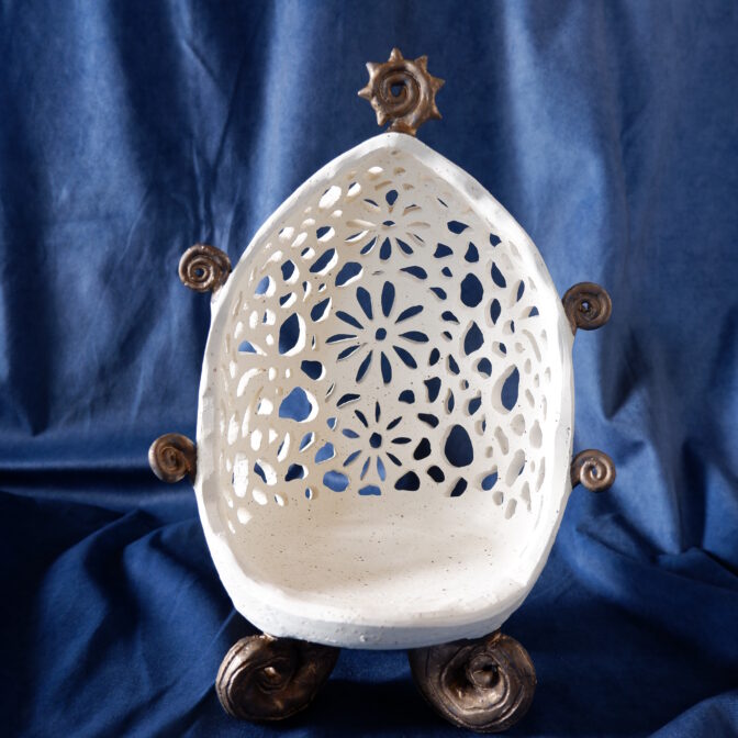 ボディ全体に透かし彫りを入れた、脚付きのドームです。