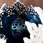 インナシェードも黒釉で焼成後、黒漆とメタリックパウダーで彩色しました。