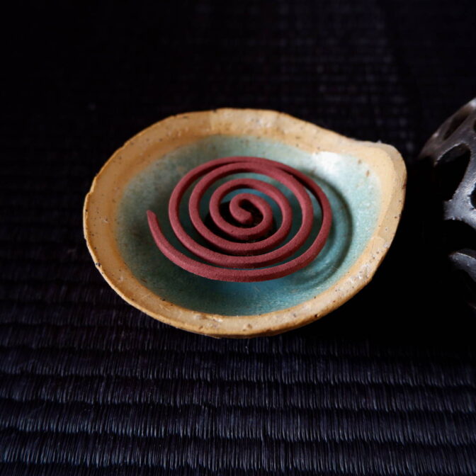 線香、コーン形、渦巻き形のお香を置けるように香立て台もお付けいたします。