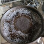 また、銅のような熱伝導性に優れた素材ではありませんので、炒め物などかき混ぜて火を通すものは大丈夫ですが、餃子など食材を動かさずに焼く調理には向いていません(最後から2番目の画像をご参考ください)。