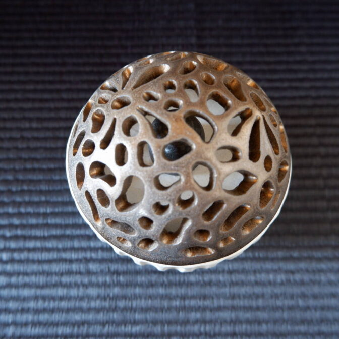芳香中に被せるキャップ(デコレーションキャップ)には透かし彫りを施し、芳香停止時に被せるキャップ(サブキャップ)の上からデコレーションキャップを重ねて被せて収納できます。