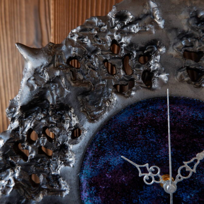 ゴシック調の肉厚のボディにトゲや透かし彫り、クラックを配しました。