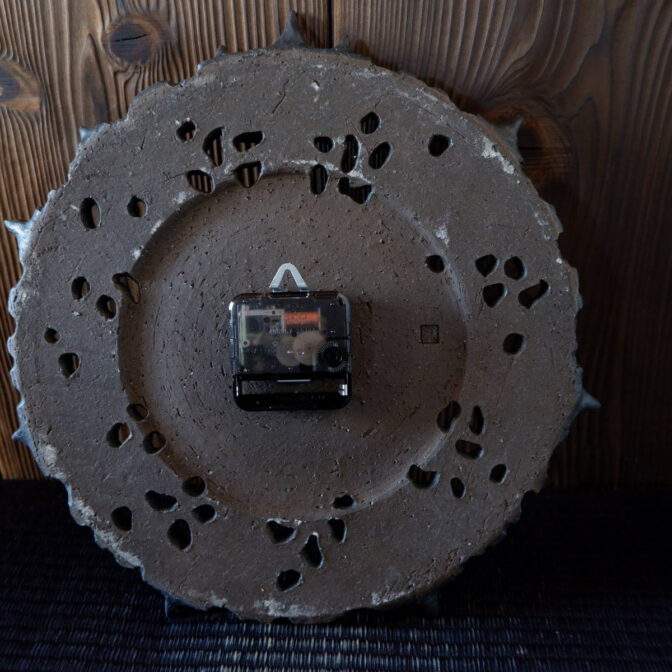 透かし彫りと漆塗りを施した壁掛け時計です。